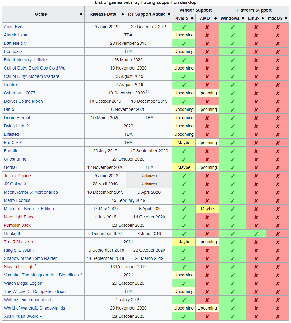 Und wenn mir jemand mit der Armseeligen Liste an Spielen kommt, die es Unterstützen, dann braucht der sich gar nicht erst die Mühe machen. Weil wenn ich lese, dass WOW, Quake 2 oder Minecraft RT unterstützen, dann fang ich gleich an zu kotzen. Die Games sind jetzt schon lange keine Grafikprachten mehr.