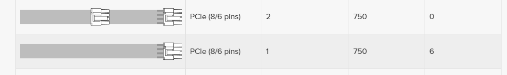 16 AWG kann 10A pro 12V+ liefern, sind also 360 Watt pro 8-Pin Stecker...