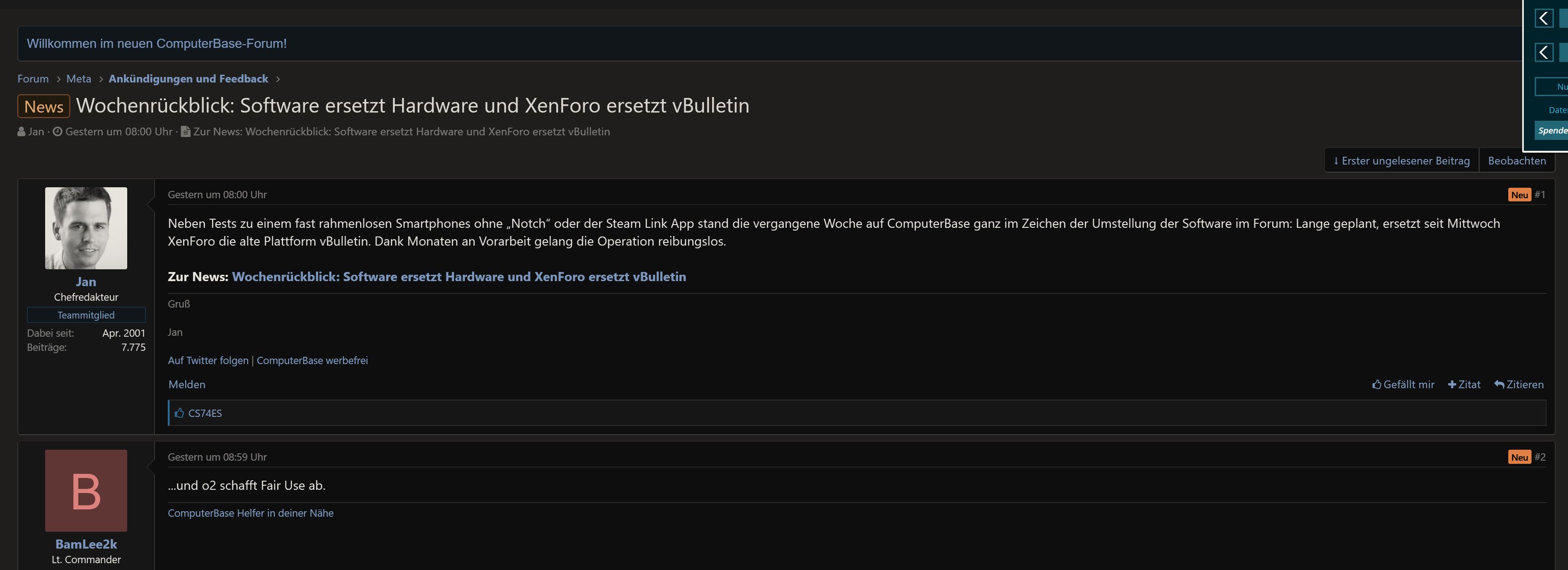 Das Forum empfinde ich aber trotzdem ganz eindeutig als sehr hässlich auf ComputerBase und die Homepage/Artikel Übersicht als veraltet, da viel Platz aus leerer Fläche besteht.