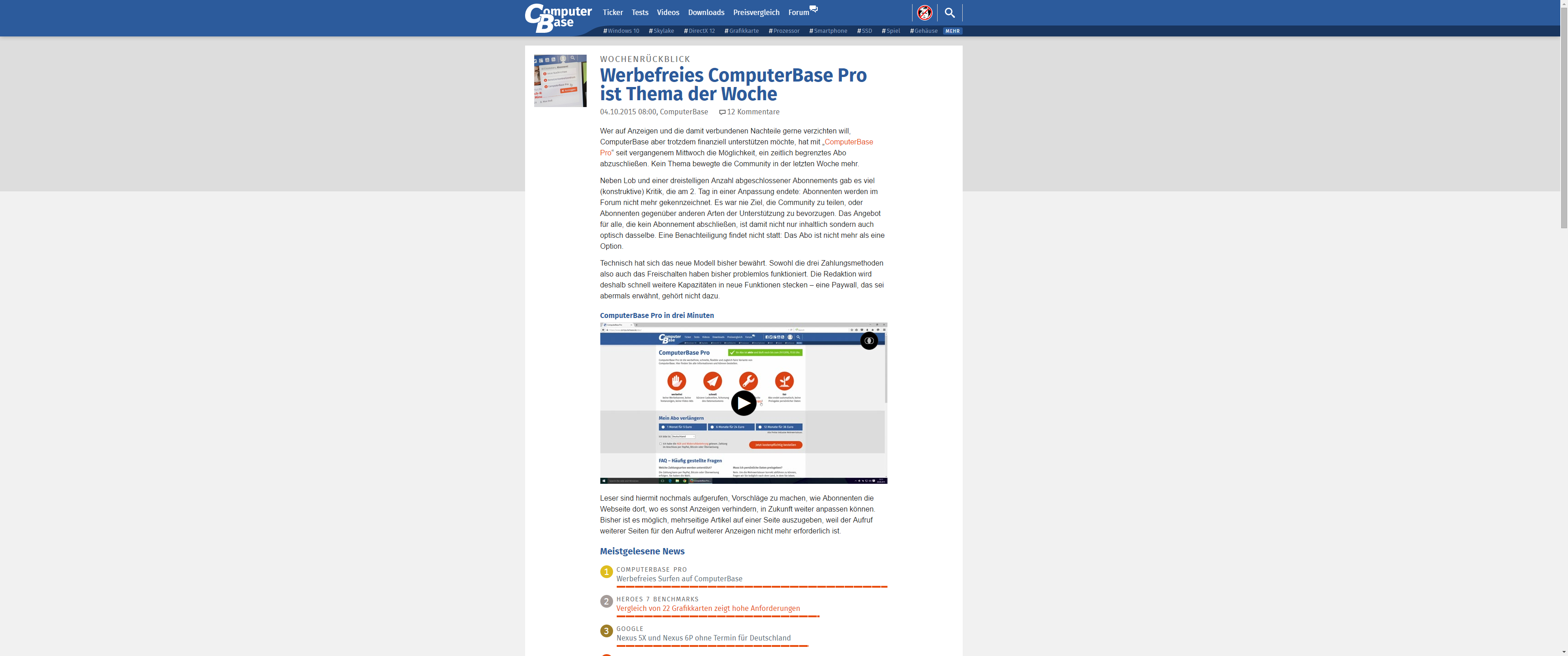Wer auf Anzeigen und die damit verbundenen Nachteile gerne verzichten will, ComputerBase aber trotzdem finanziell unterstützen möchte, hat mit „ComputerBase Pro“ seit vergangenem Mittwoch die Möglichkeit, ComputerBase Pro zu nutzen. Kein Thema bewegte die Community in der letzten Woche mehr.