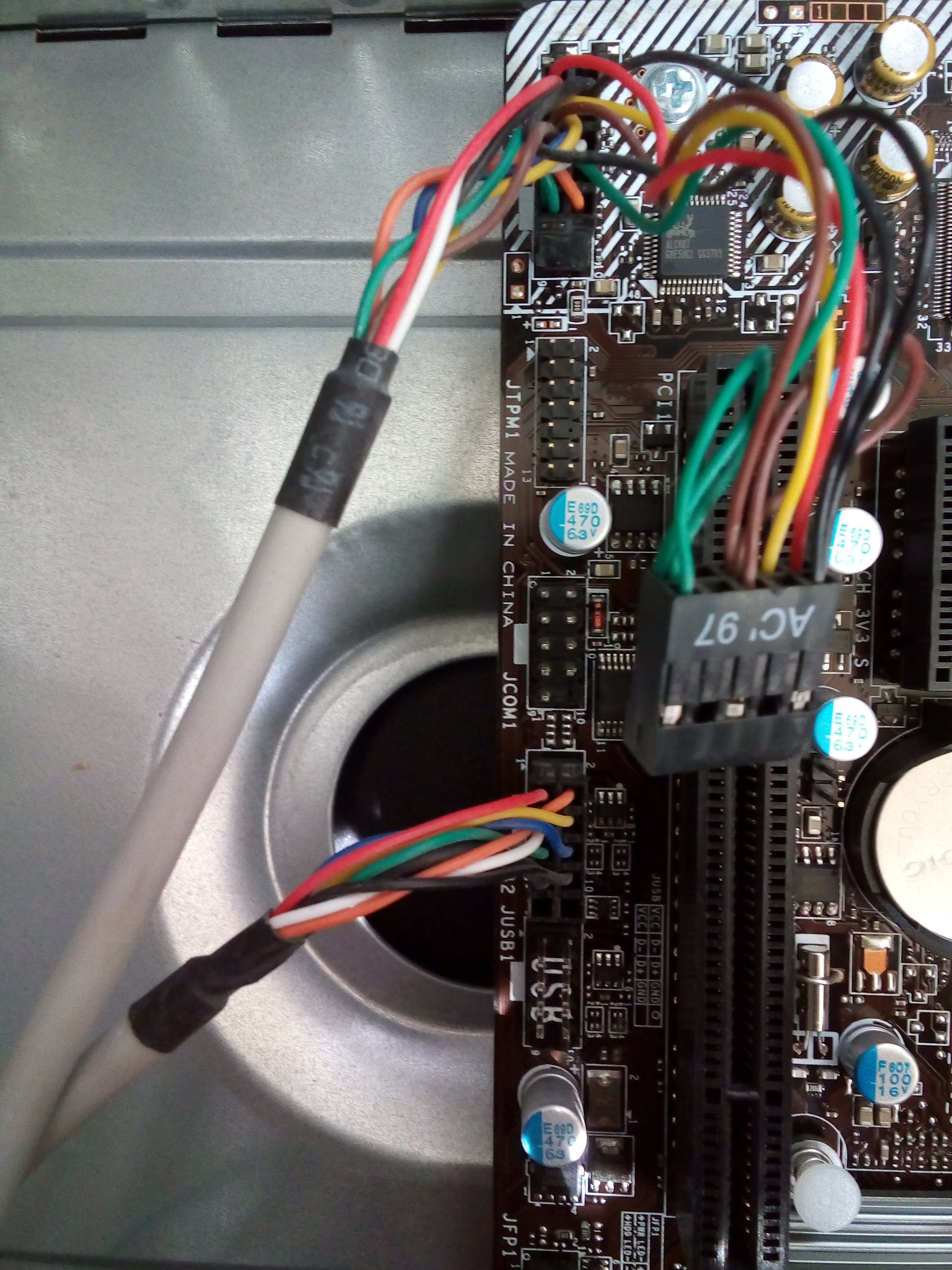 AC97 ist der ältere Standard zum Anschluss von Sound, in dem Fall vermutlich der Klinkenstecker deines Gehäuses. Du hast schon korrekterweise den neueren HDAudio Standard angeschlossen. da gilt entweder oder. Den AC97 Stecker brauchst du nicht.