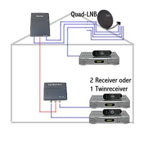 Den Quad LNB Multischalter dann einfach zwischen LNB und den Rest (Stacker, etc.)