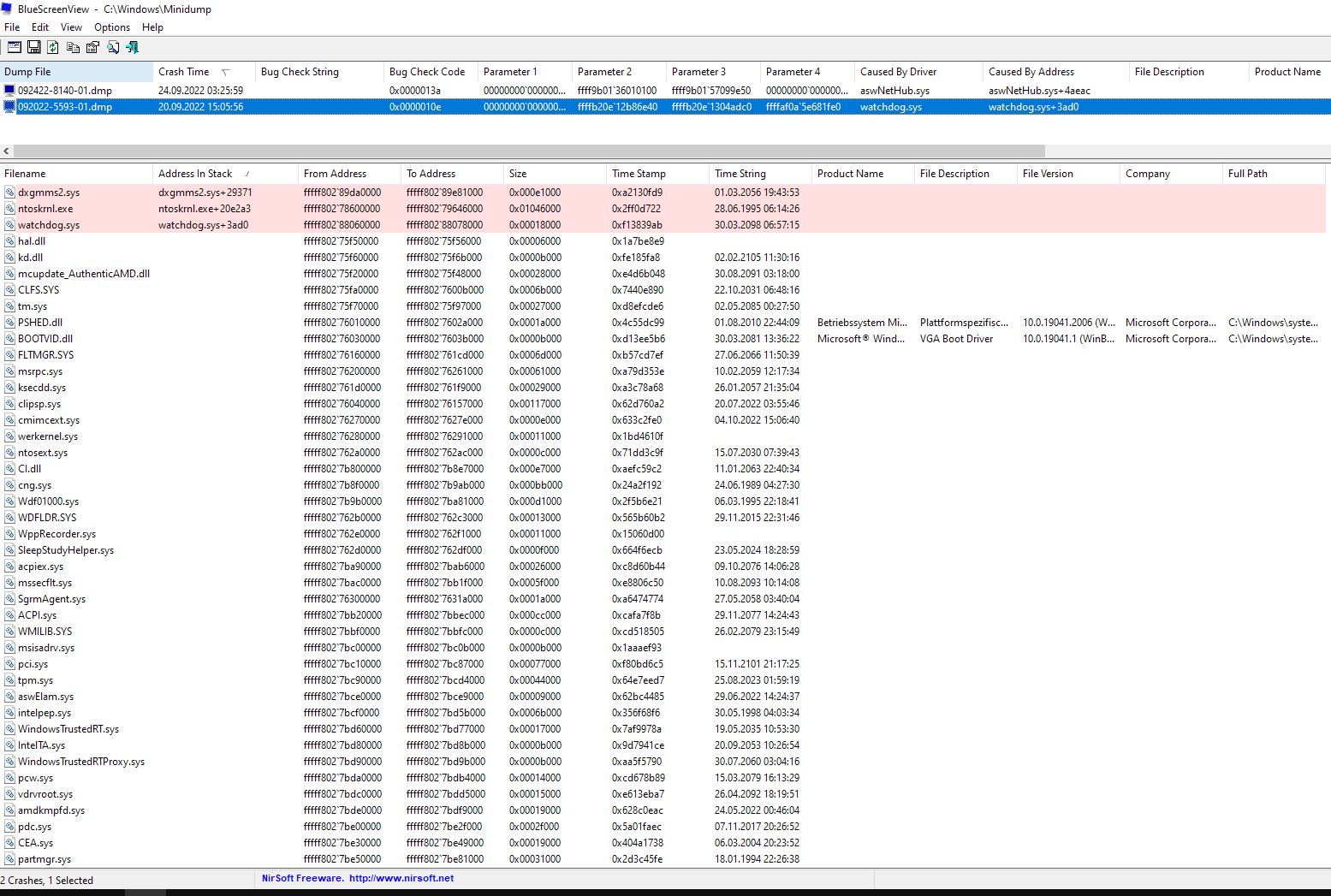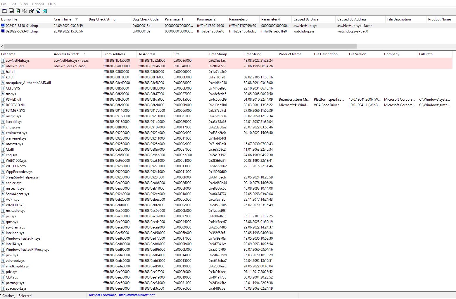 Ich sehe da jetzt auch keinen Zusammenhang zwischen den 2 Bluescreens, aber vielleicht übersehe ich was und jemand anderer kann das besser beurteilen. Hier könnte man nur empfehlen Avast upzudaten oder einfach zu deinstallieren, einen Nachteil hast du dadurch nicht, wenn du nur Windows Defender verwendest.