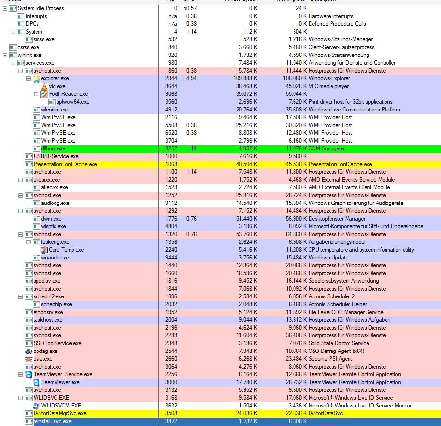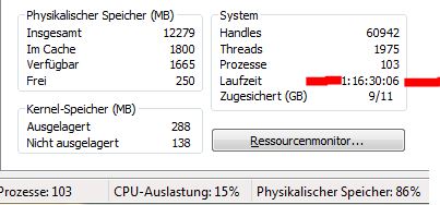 Laut Ressourcenmonitor werden über 10.000 MB belegt, aber ich zähle nur ~7GB, wenn ich den RAM-Verbrauch der einzelnen Prozesse zusammenaddiere.
