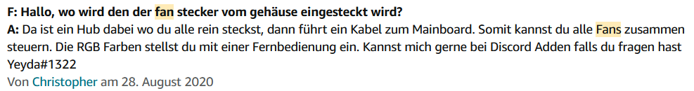Das mit dem Amazon Q&A war ein guter Tipp haha. Laut anderen Antworten kann man auf den FAN Anstecker verzichten. Zumal in meinem Fall weder an meinem Corsair Hub noch am Mainboard dafür etwas vorhanden ist.🤷♂️