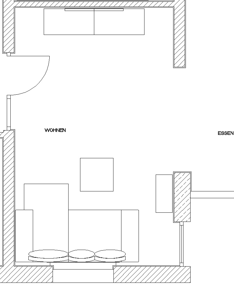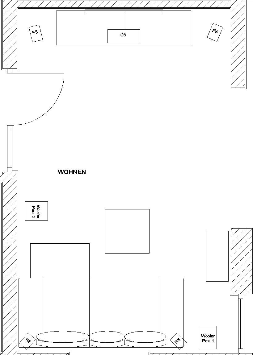 Was wäre eurer Meinung nach der beste Platz für den Woofer, ich habe mal eine Zeichnung angehängt, damit ihr seht wie die Möbel stehen.
