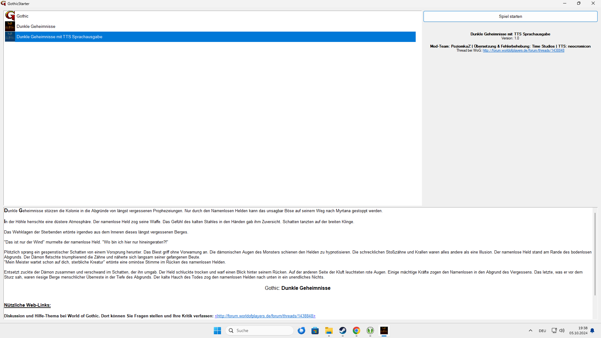 ich wollte nochmal Gothic Dunkle Geheimnisse spielen.