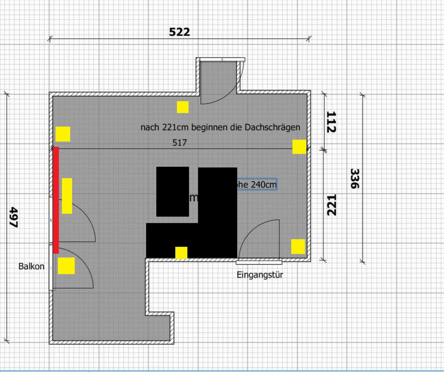 Aber erst einen Plan machen und dann alles nach Plan aufstellen führt schnell zu einem frustrierendem Ergebnis. Ärgerlich, wenn dann schon Löcher in der Wand/Decke sind (eigene Erfahrung).