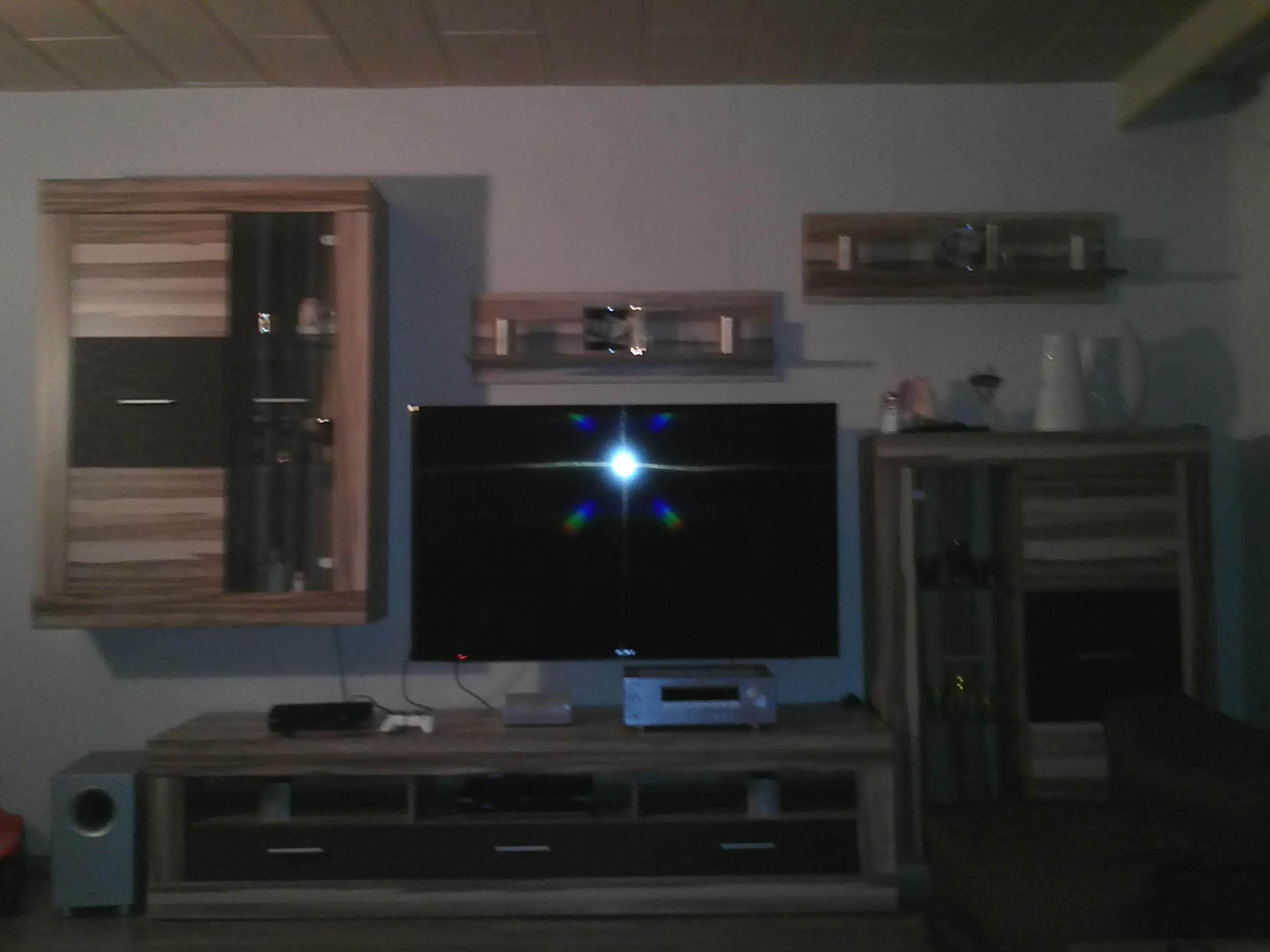 Die Lautsprecher stehen momentan links und rechts in den Fächern vom Lowboard, dass das nicht optimal ist weiß ich selber