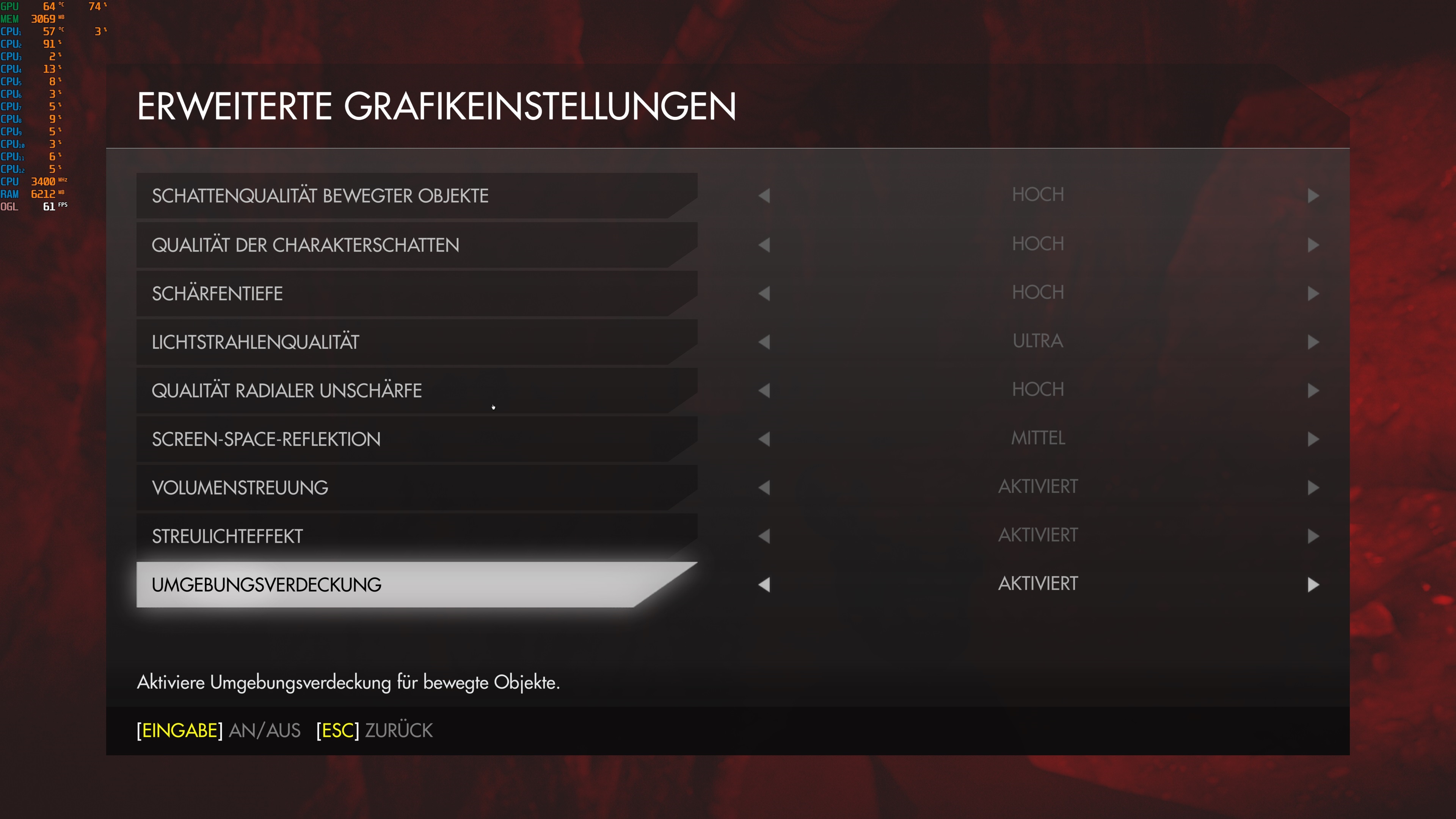 Einstellungen Ingame sind wie gesagt auf Ultra, die einzige Abänderung ist die Deaktivierung von Antialising. (Screenshots folgen)