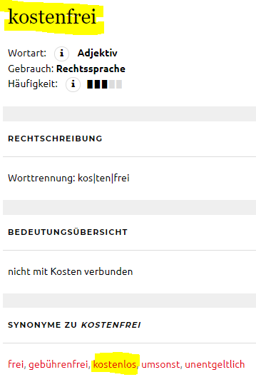 Kostenlos, kostenfrei, ohne Kosten, das ist alles das gleiche!