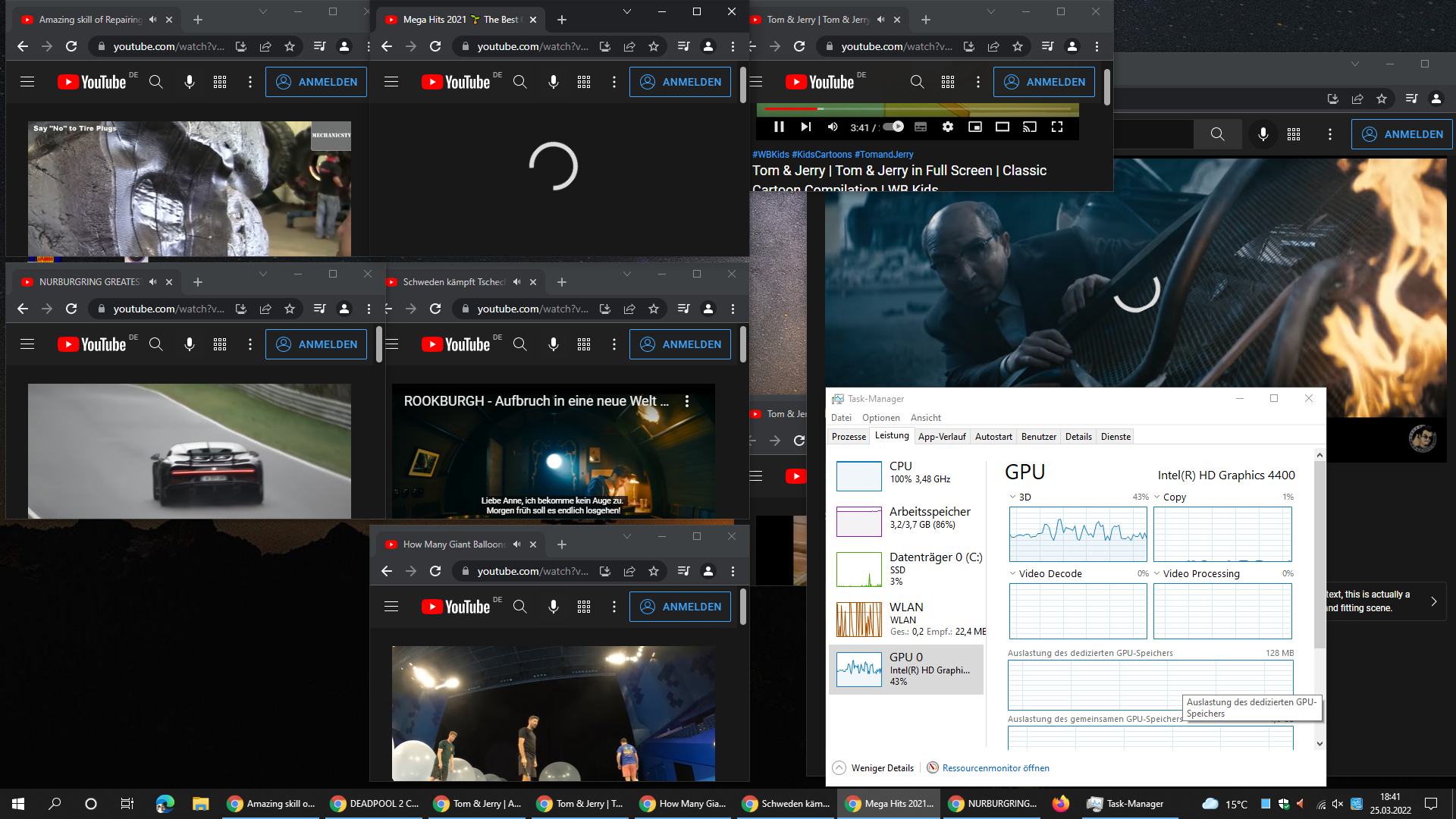 So, hab ihn mal gequält. Alle Videos laufen. Mehr Internet hab ich auch nicht.