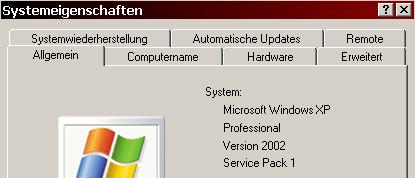 Ich wollte heute einen USB2.0 Treiber auf Win XP Prof. installieren. Die installation wurde abgebrochen, weil ich angeblich kein SP1 drauf hätte. Ich bin mir aber sicher, dass ich eine Win CD mit SP1 inklusive habe und das auch auf meinem Rechner ist. Woran kann ich jetzt genau erkennen, ob das SP1 installiert ist.