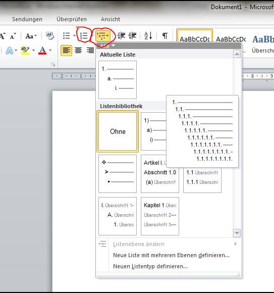 Wenn ich eine nummerierte oder eine Liste mit den schwarzen Punkten beginne und dann mit dem Tabulator eine weitere untergeordnete Listenebene anfangen möchte, z.b. 2.1. oder 2.1.1. funktioniert das nicht. Das Aufzählungszeichen bleibt gleich (also 2.) und es wird nur der Tabulator eingerückt. Ich möchte aber, dass beim Klick auf den Tabulator z.B. aus einer 3. eine 2.1. wird um untergeordnete Listenebenen zu führen.