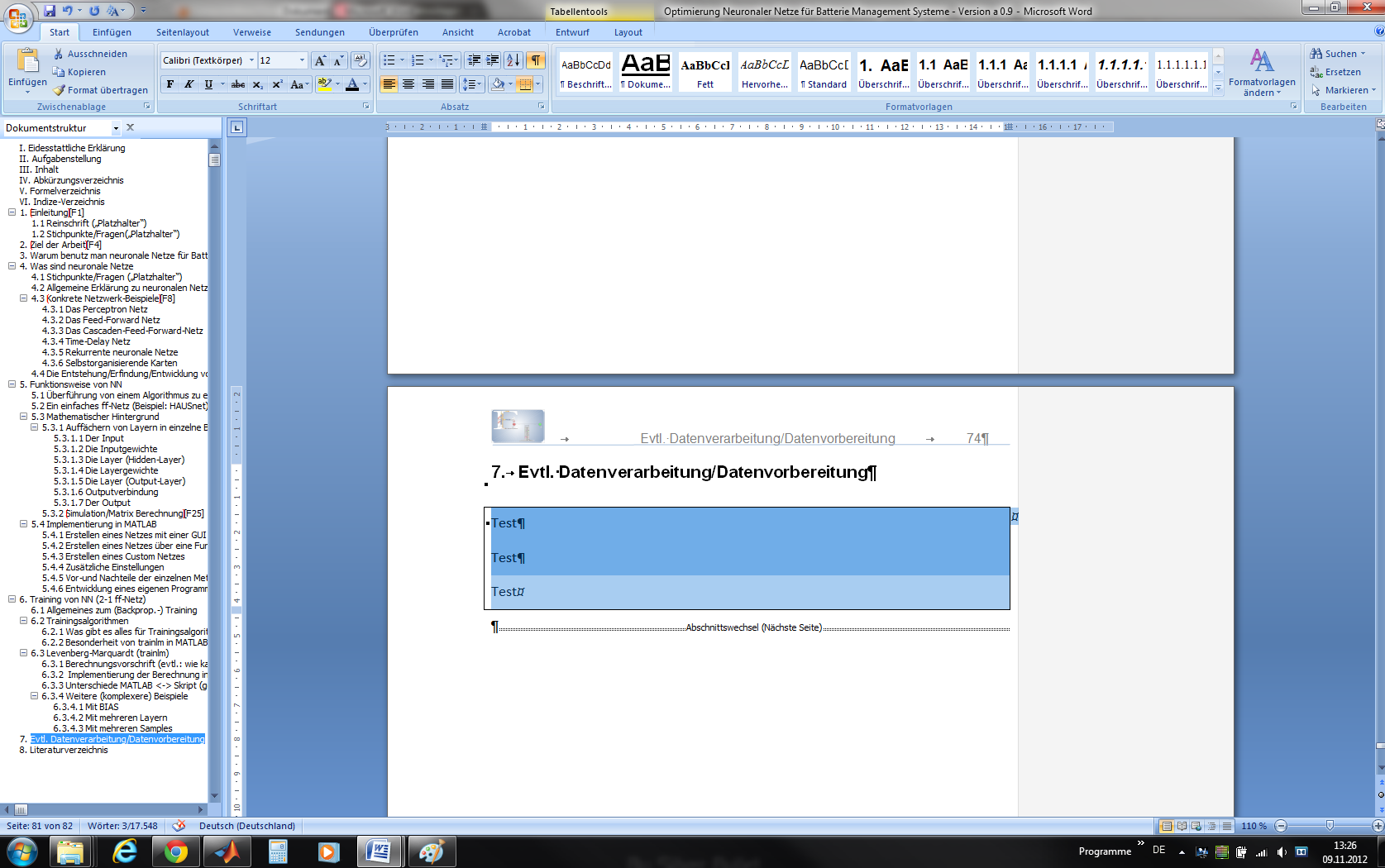 Zur Zeit arbeite Ich an einem etwas längeren Dokument, wo Ich in Tabelle auch hin und wiedermal Programmcode,oder Formeln einfügen muss. Seit geraumer Zeit hat sich aber irgendwie die Formatierung der Tabellen verstellt, oder irgend sowas Ähnliches. Sobald Ich nämlich "Enter" drücke und das Absatzsymbol angezeigt wird, ändert sich die Formatierung der jeweiligen Zeile und die Schrift wird sichtbar dicker. Wenn Ich mir dann die Formatierung anschaue, ist laut Word aber alles in Ordnung. Markiere Ich allerdings die Tabelle ist selbst in der Markierung zu sehen, dass irgendetwas nicht stimmt.