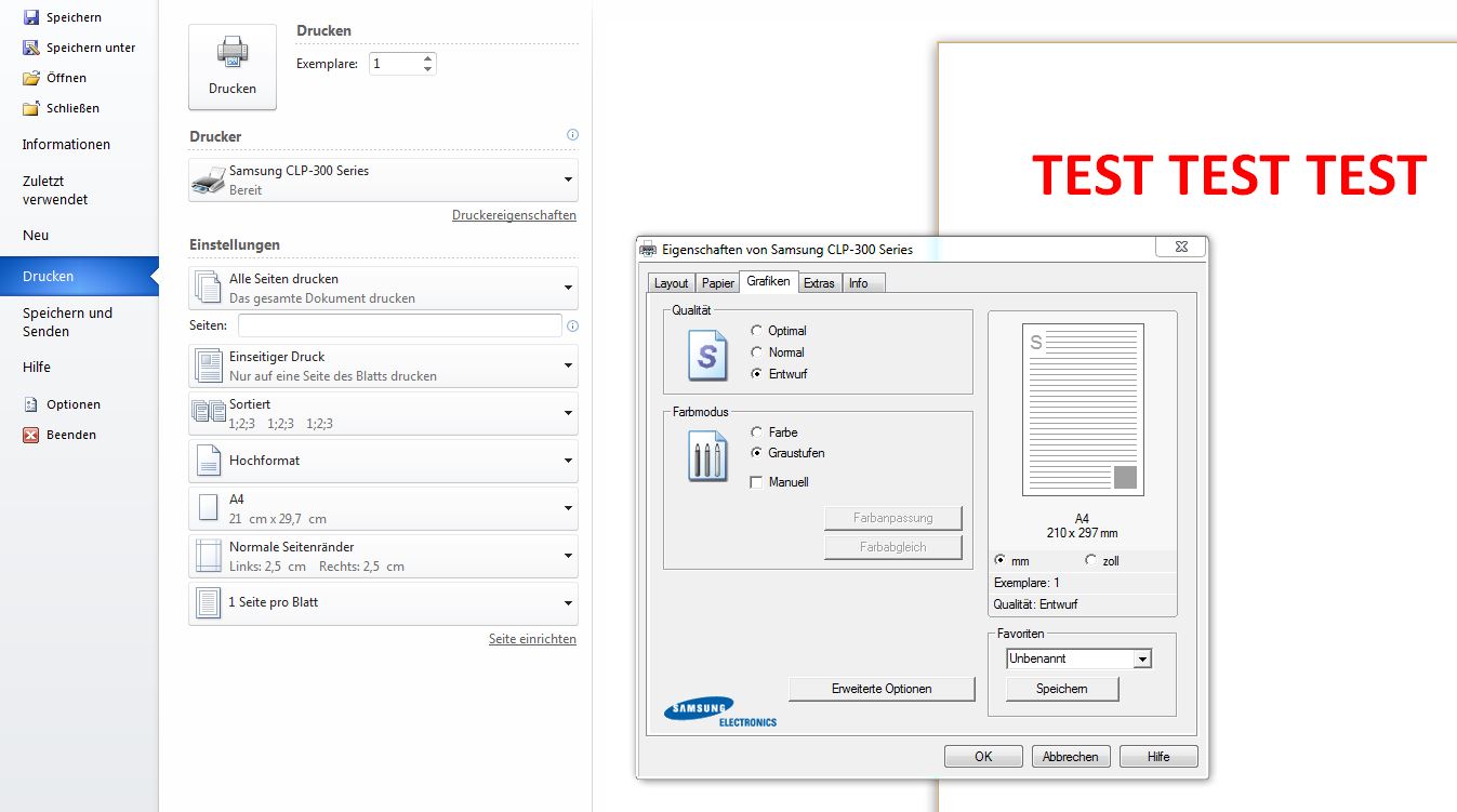 Globale Einstellung = zum Beispiel Farbe und normale Qualität. Sogar in EXCEL funktioniert das.