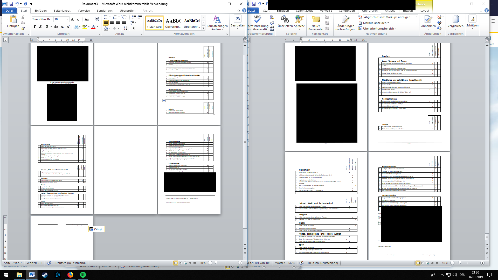 Was gestern scheinbar noch zu klappen schien, treibt mich jetzt so langsam in den Wahnsinn... die Zeugnisse sind komplett fertig, jetzt wollte ich nur noch mit cut+paste die jeweils 4 Seiten in ein neues Dokument ziehen, damit die Seitenzahl stimmt. Dabei wird die Formatierung aber zerschossen, aus 4 Seiten (rechts) werden 7 (links)... gibt's dafür eine schnelle, einfache Lösung? Sonst mache ich mich jetzt nochmal an die Sache mit den Abschnitten setzen...