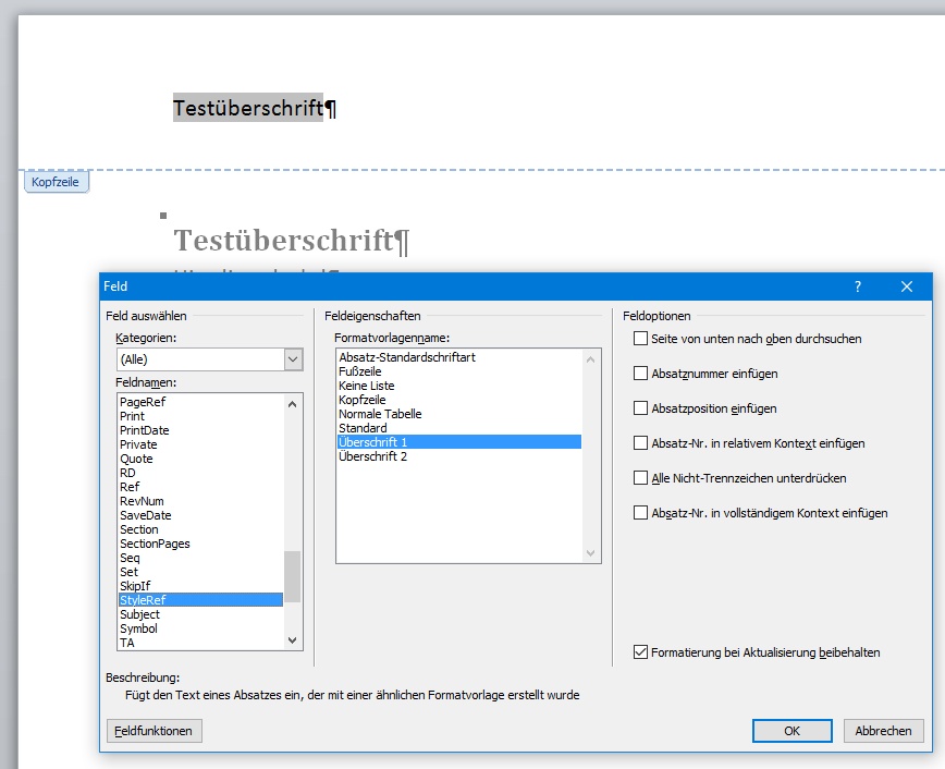 ich steh gerade total auf dem Schlauch. Ich möchte den Kapitelnamen linksbündig haben, die Seitenzahl rechtsbündig und die komplette Zeile unterstrichen haben. Das habe ich über Schnellbausteine > StyleRef gemacht. Leider funktioniert das nicht so richtig, wie ich mir das vorstelle. Ich habe eine Datei angehängt, wie ich das mir vorstelle. Übrigens, das Beispiel ist nicht von mir.