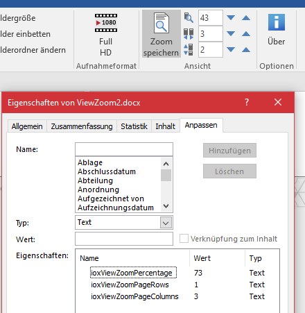 Wie stelle ich sicher, dass der Speicher-Zoom auch beim öffnen wieder da ist? Oder wurde diese mir von O2k (und, behaupte ich, ich O10) bekannte Funktionalität weggespart?