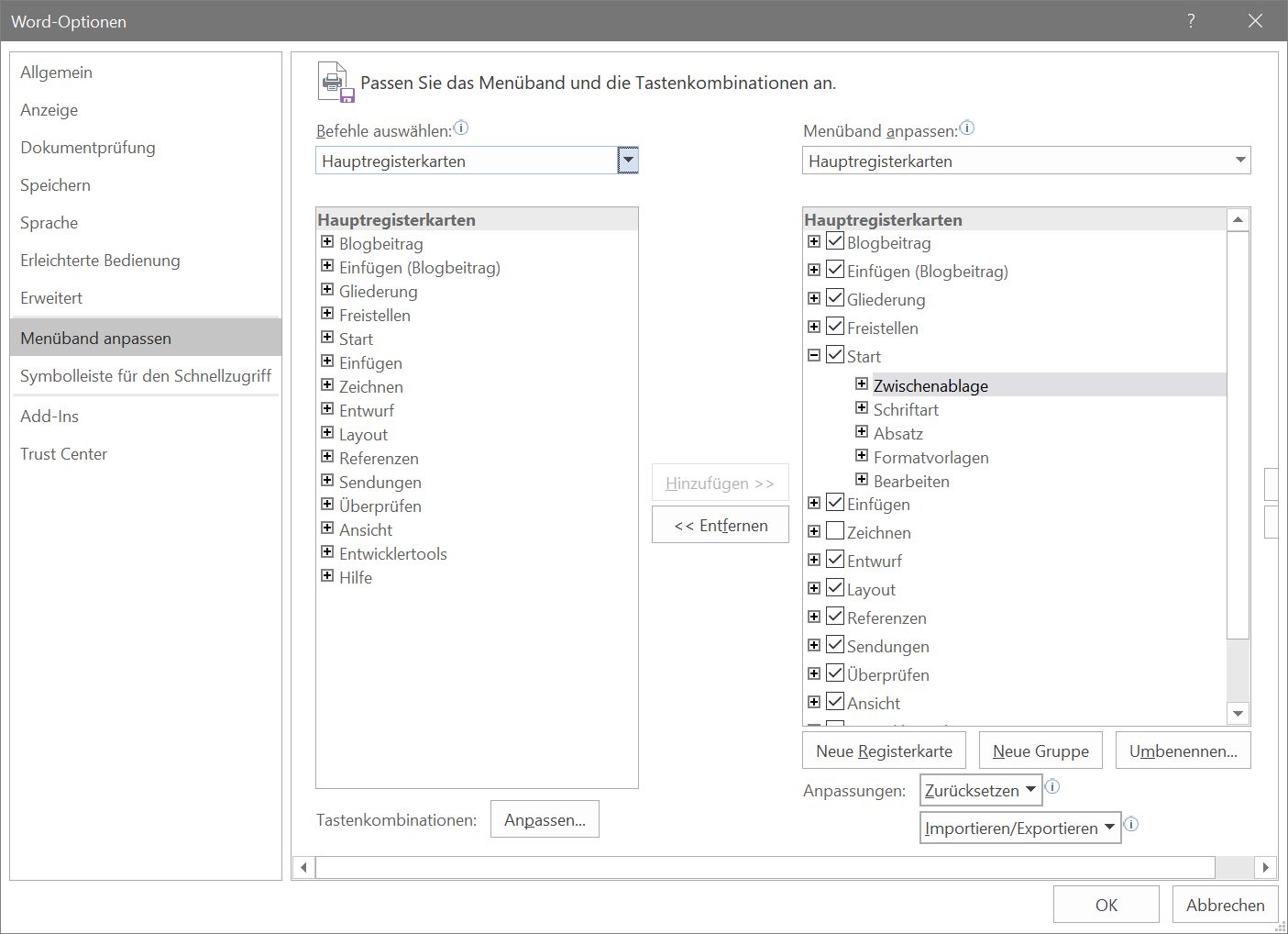 kann ich irgendwie das gleiche hinzufügen oder ändern wie in Word 2010?