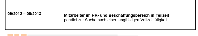 ich erstelle einen Lebenslauf und habe für die Zeitangaben links eine eigene Tabelle erstellt und eben für die Berufsangaben rechts.