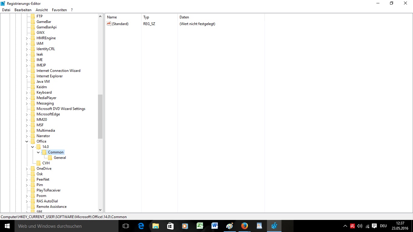 "Software\Microsoft\Office\14.0\Word\Data" navigieren und den gibt es bei mir nicht, bei mir gibt es da nur "Software\Microsoft\Office\14.0\Common\General".