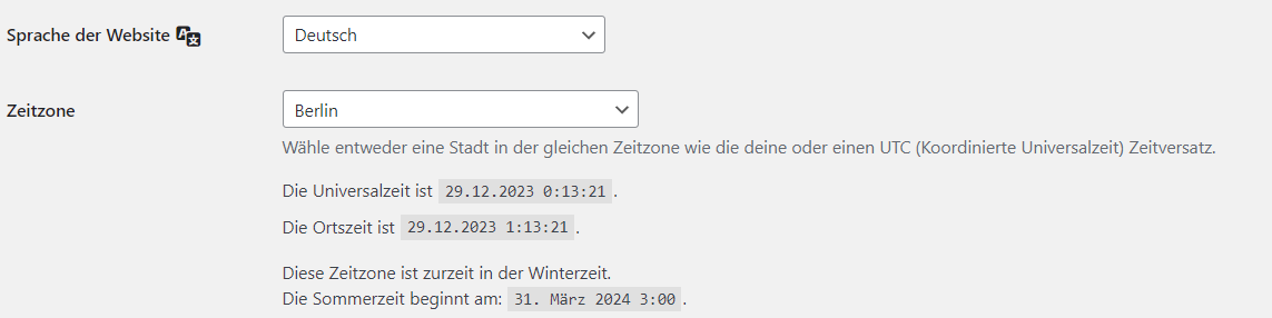 ich habe auf meinem vServer eine Wordpress Website am Laufen, jetzt fiel mir in den Wordpress-Einstellungen auf dass die "Universalzeit" 1 Stunde zurück geht. An sich stimmt die Zeit vom Server, wenn ich mit einer PHP-Datei die aktuelle Zeit ausgebe ist das auch die aktuelle. Wenn ich aber über ein Plugin, womit ich PHP-scripts ausgeben kann in WP, die Uhrzeit ausgebe, ist das diese Universalzeit.