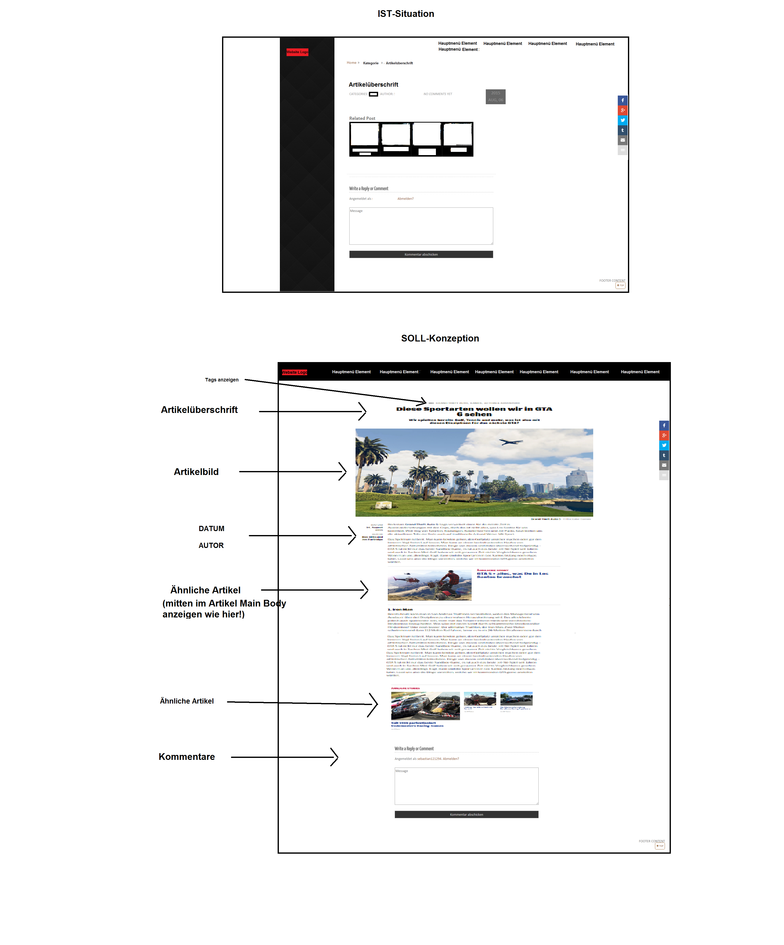 Grob zusammengefasst: Die Artikel-Ebene soll genauso wie die Homepage einen Header besitzen und im Vollbildmodus angezeigt werden (ergo ohne Sidebar).