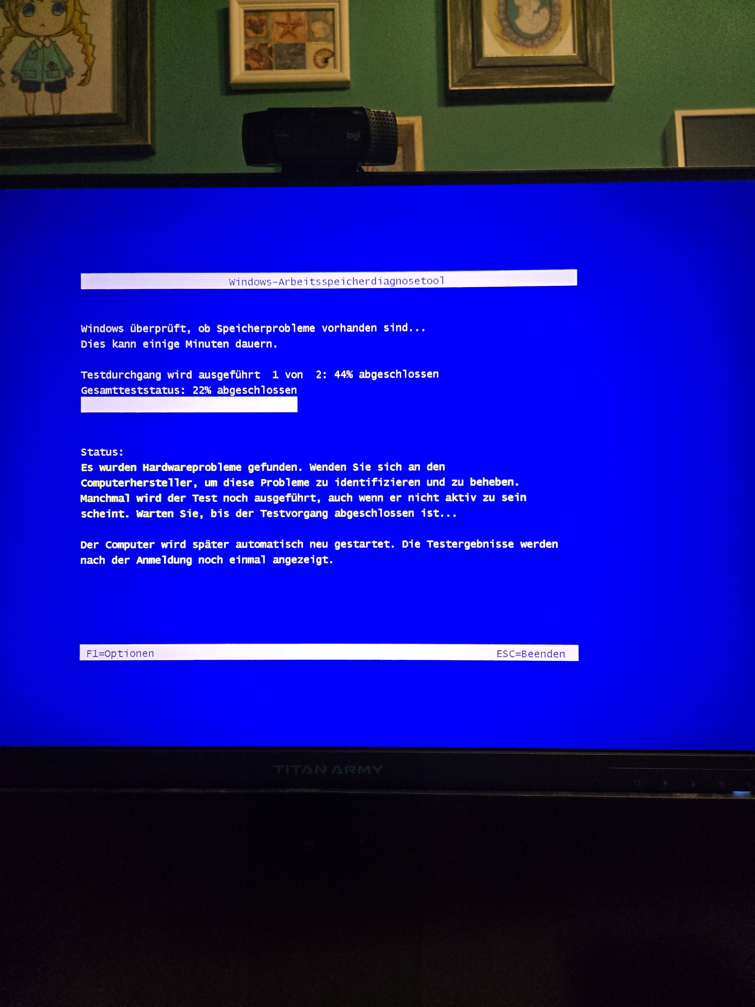 Arbeitsspeicher diagnose tool was lange dauert zeigt hardwareprobleme (siehe Anhang)