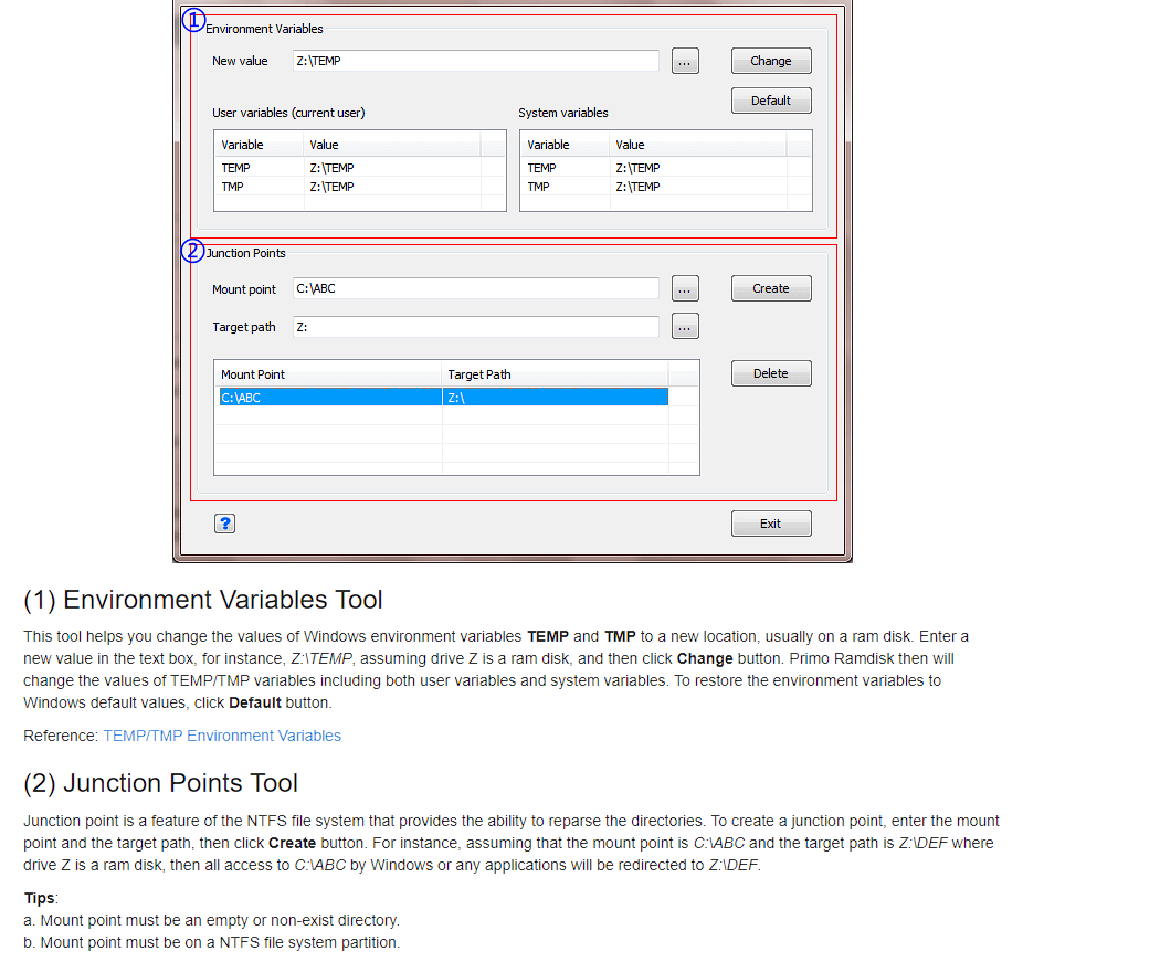 Dazu kann ich dir leider nichts sagen ich kenne diese Funktion nicht ich leite die Programme immer über die Kommando Zeile oder Registrierungs eintrage auf die RAMDisk um.
