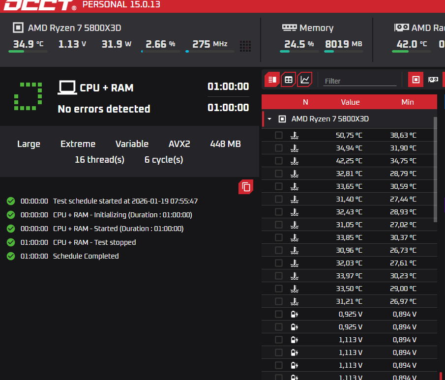 Ich kenne keinen 5800X3D der -30 stabil für 24h im Y-Cruncher durchhält.