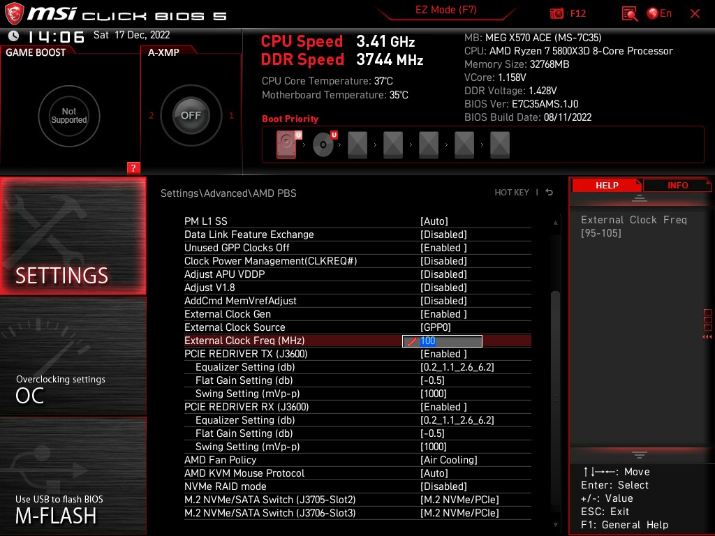 Da dann so vorgehen wie ich beschrieben habe, den DRAM / PCIE fixieren auf 100 und den Baseclock der CPU kannst du anheben (oder auch auf 100 fixieren - was dann dem Spread Spectrum disable gleich kommt).