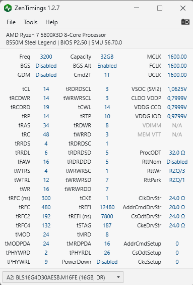 Den RAM von 3600MHZ auf 3200MHZ gesetzt und die Timings ausgelotet.