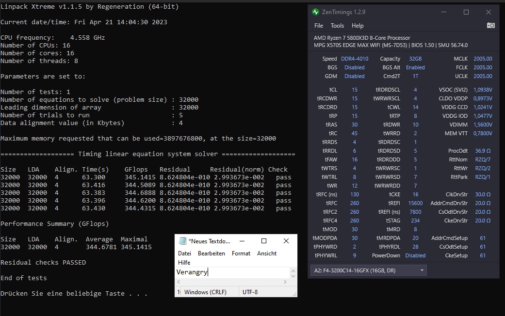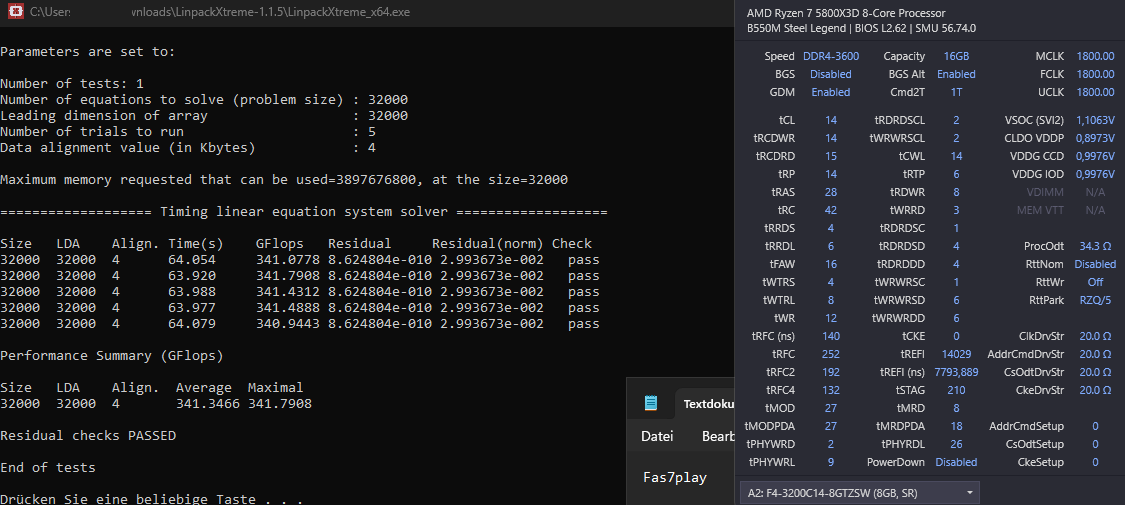 Deine Mushkins interessieren mich sowieso sehr - schauen gut aus und kosten unfassbar wenig. Wäre spannend ob die auch auf 3800 gehen. Viele hier finden schon RAM OC beim 5800X3D generell nicht sinnvoll, wenn dann reicht den meisten 3600, und bei GDM off ist hier jeder raus. Ich bin so ein elitärer Freak, und ich zelebriere übrigens in diesem Moment mit euch, dass ich nun eben folgendes in Kombination stabil erreicht hab: