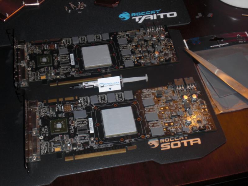 Kaum hatte ich die 2te EVGA GPU installiert, merkte ich, dass mein bisheriger ArticCooling GTX GPU Kühler von der ersten GraKa echt leise und die 2te GraKa mit Original-Lüfter einfach laut war. Weiterhin hitzte das System sich nun merklich auf und ich überlegte, wie ich das beseitigen könnte.