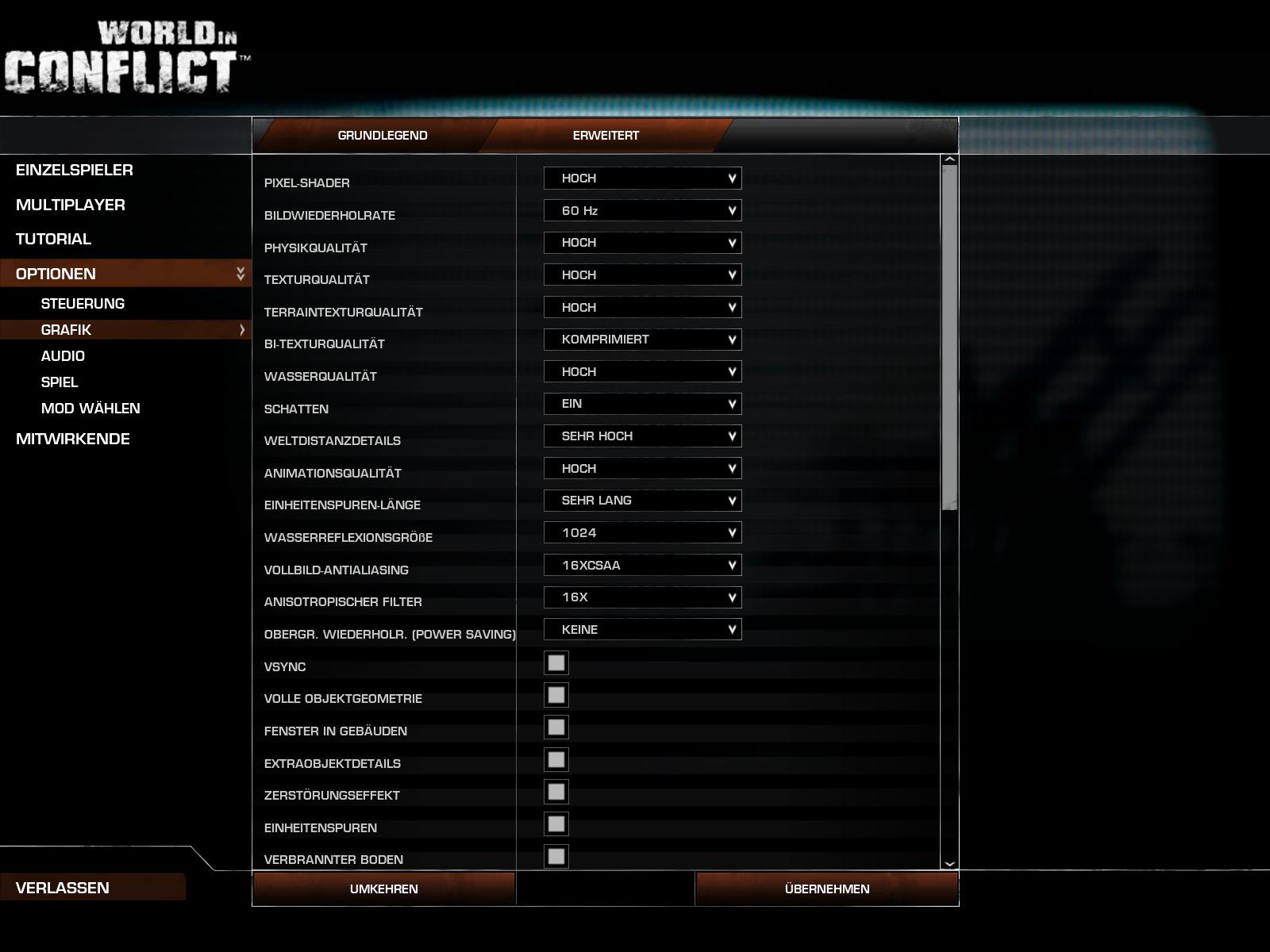 1)Find your "Game Options.txt" file in C:\Documents and Settings\XXXX\My Documents\World in Conflict
