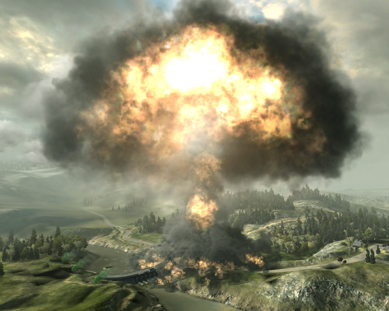 Was bei der Atombombe eigentlich nur noch fehlt ist das umwerfen der Bäume. Die Rauchschwaden (ganz zu beginn, links die 3 grünen Dropzone-Marker) reagieren ja schon drauf.