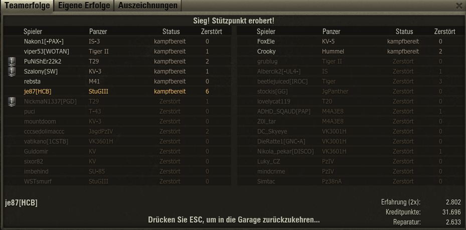Falls Interesse besteht könnte man mal als Clan etwas zusammen unternehmen anstatt immer nur in seinen 3 Mann Zug/Platoon zu fahren.