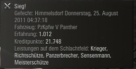Online Games zock ich mittlerweile seit 98, seit 2001 auch in einem Clan. Da ich von der BF Reihe komm (BF1942, BF2 usw.) ist "Pansa fahren" für mich nix total unbekanntes, in WoT bin ich aber absoluter Noob (immerhin schon zum VK-3001 gekommen).