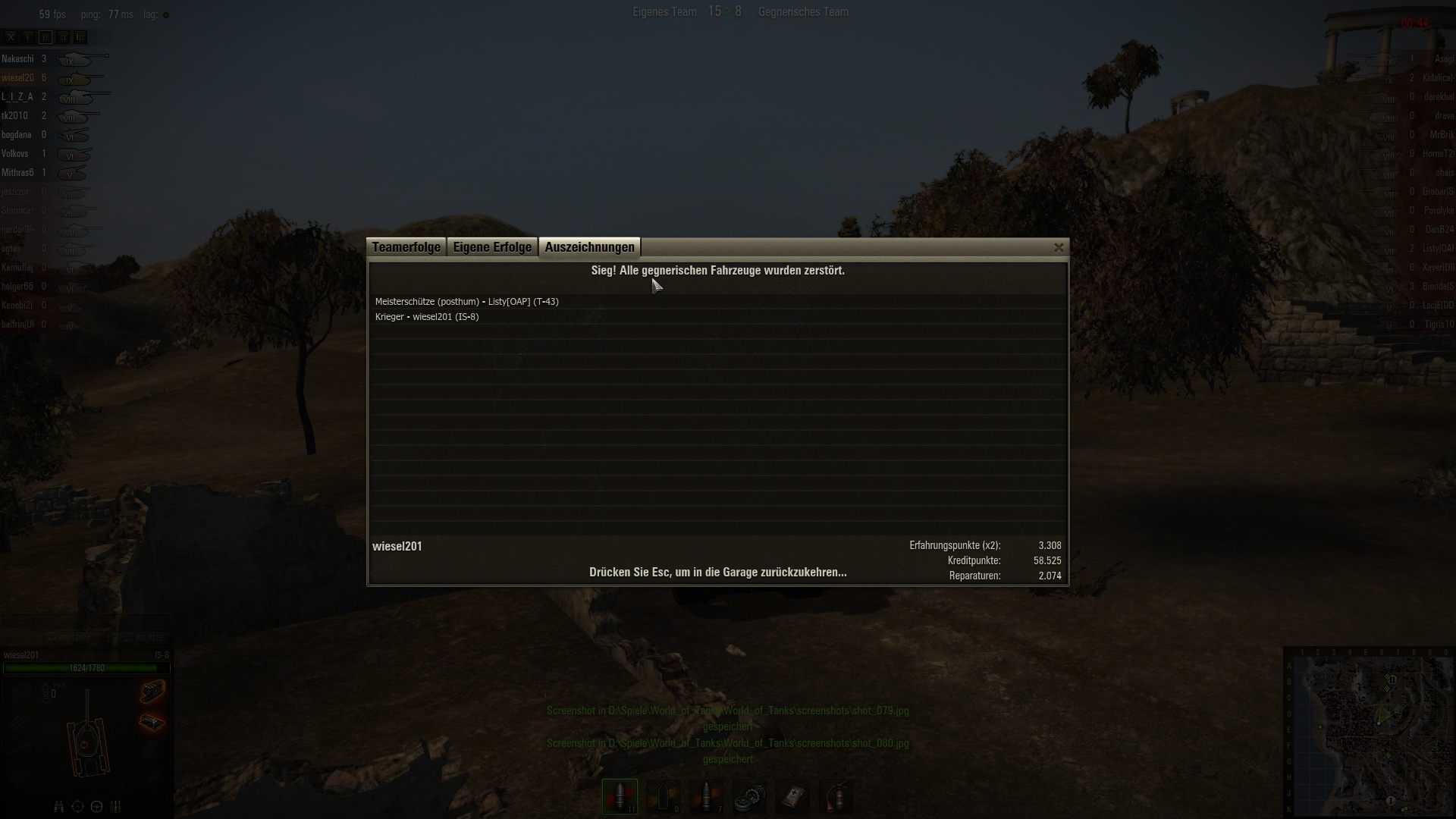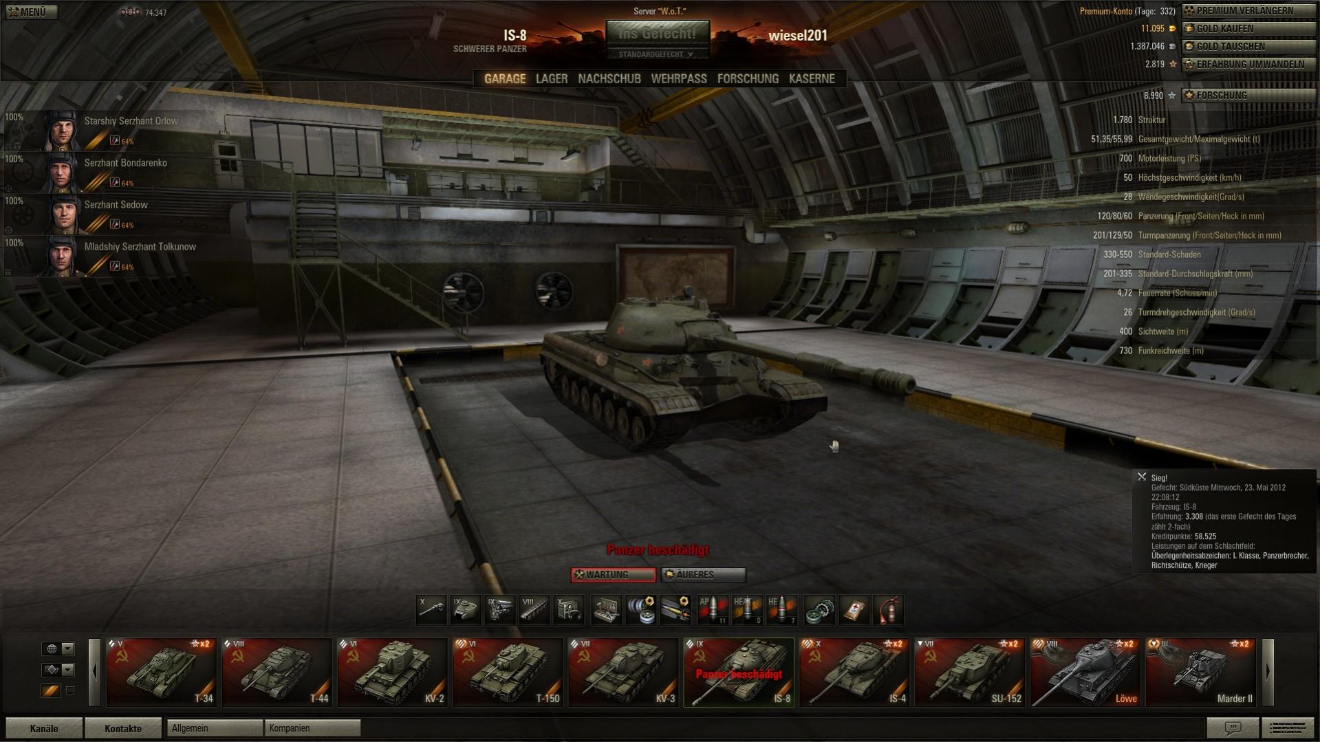 PS: Ich glaube der T-34-85 ist da eindeutig der bessere T-6 Medium, den hat nämlich mein Klankollege gefahren und konnte damit sehr viel beschädigen.