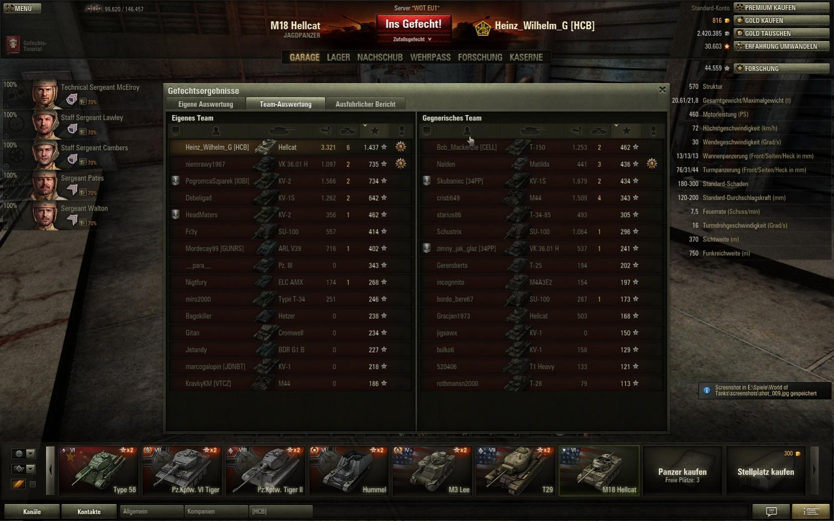 Es gibt hier mehrere Faktoren zu berücksichtigen. Zum einen ist der Jagdpahnter schwach gepanzert und wenn man ihn als Angriffstank benutzt gegen Heavys müssen die Schüsse sitzen. Das andere Problem was ich hatte war, dass mein Team oftmals schneller aufgeraucht ist als ich die Gegner abschießen konnte deshalb habe ich auch sehr aggressiv damit gespielt und nicht mich irgendwo hinter einem Busch versteckt.
