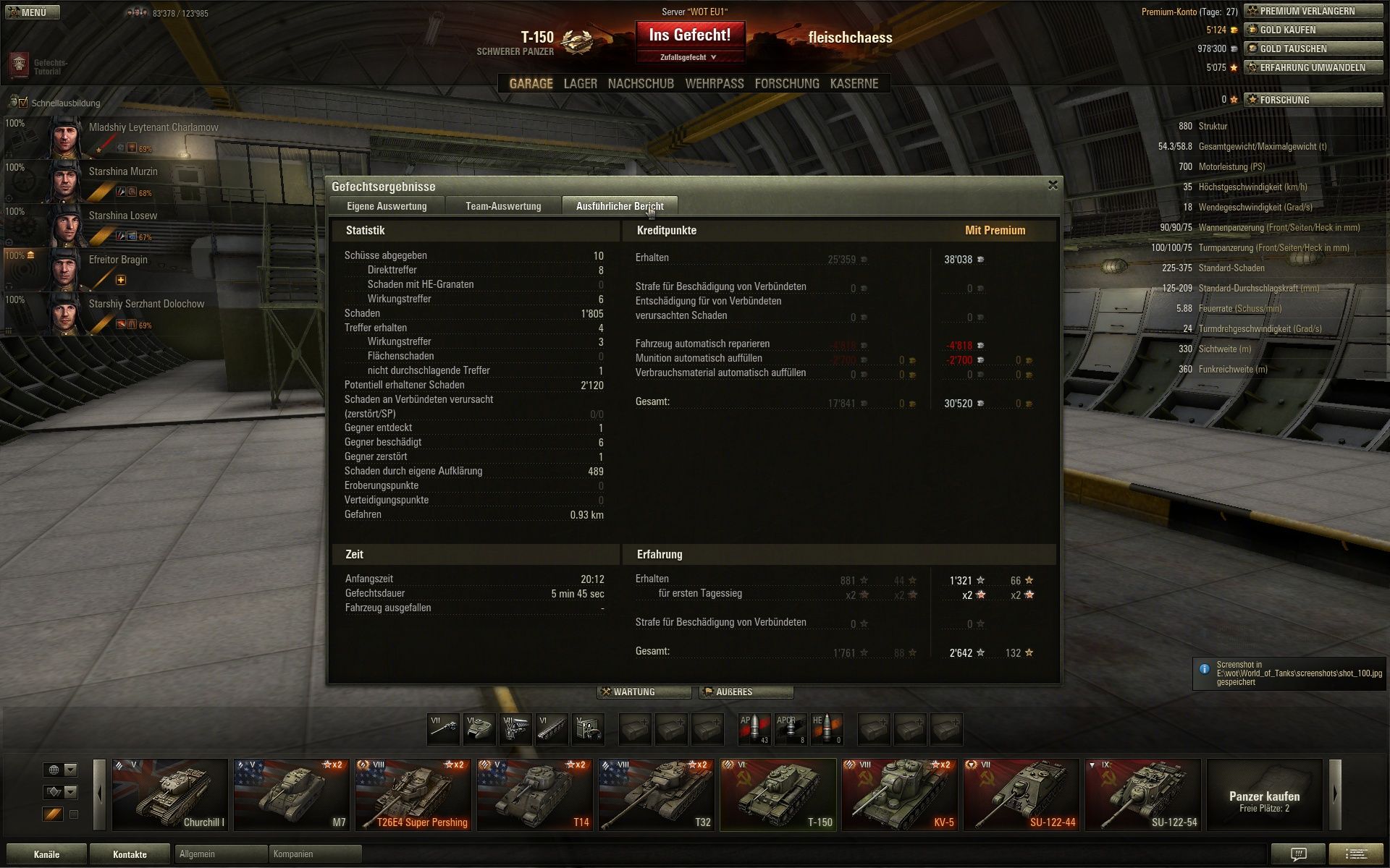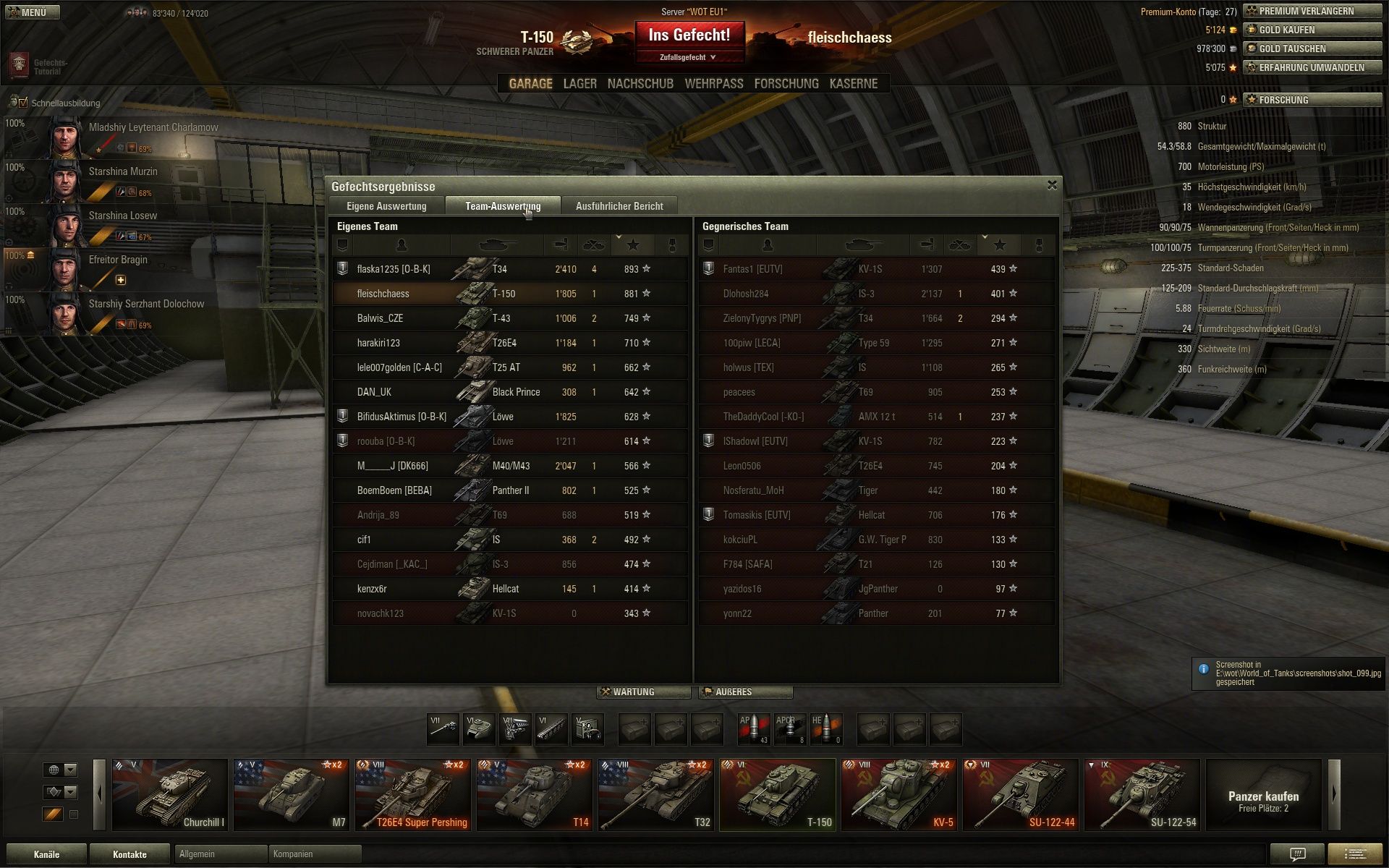 Für mich einfach speziell,weil ich neben einem KV-1s der einzige T6 war,ansonsten T7/T8,und der T-150 nur noch zum Crew Leveln gebraucht wird,und das äussert selten.