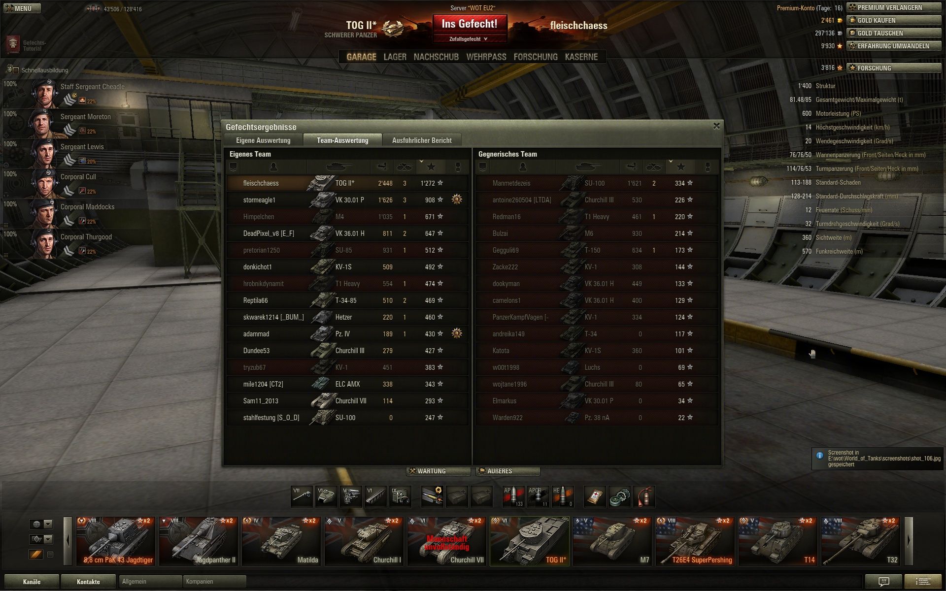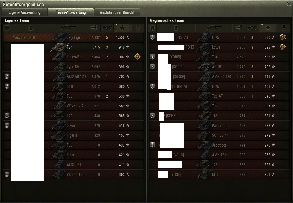 1500 XP mit dem T29 (ohne Bindestrich, damit es auch der Letzte noch lernt ): "Lächerlich" (natürlich nicht pöse gemeint).