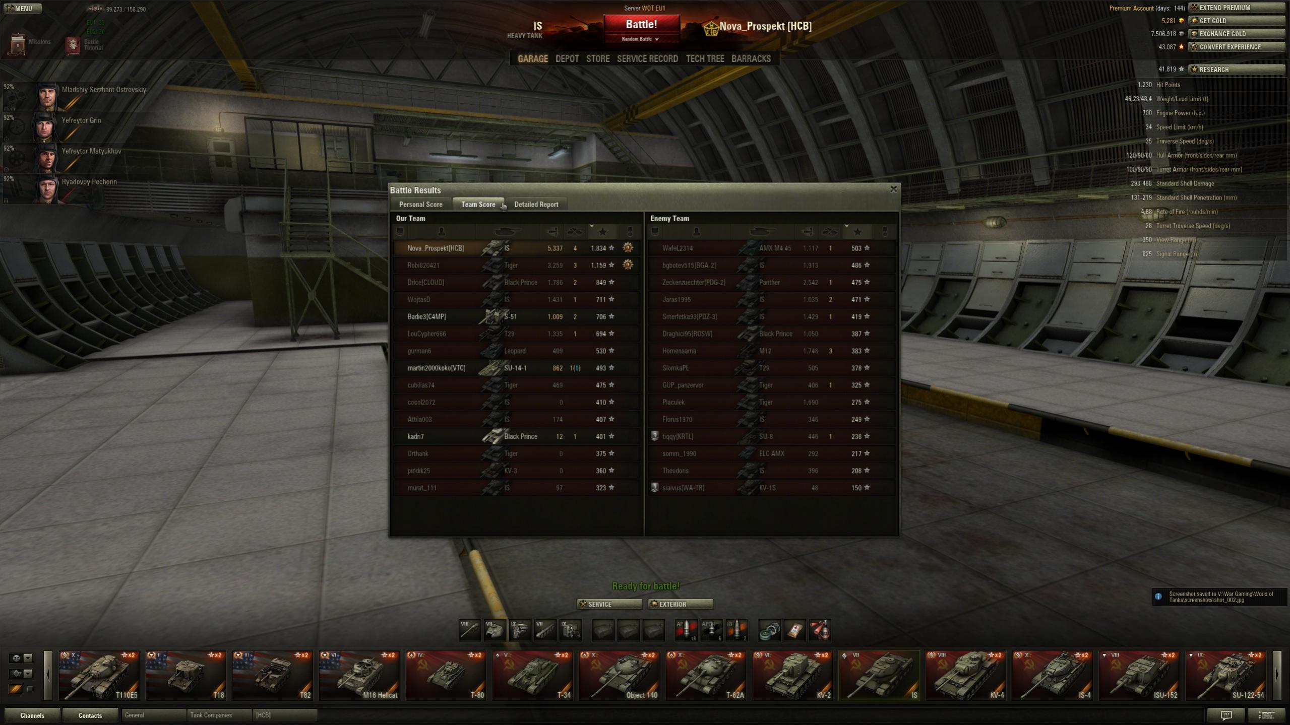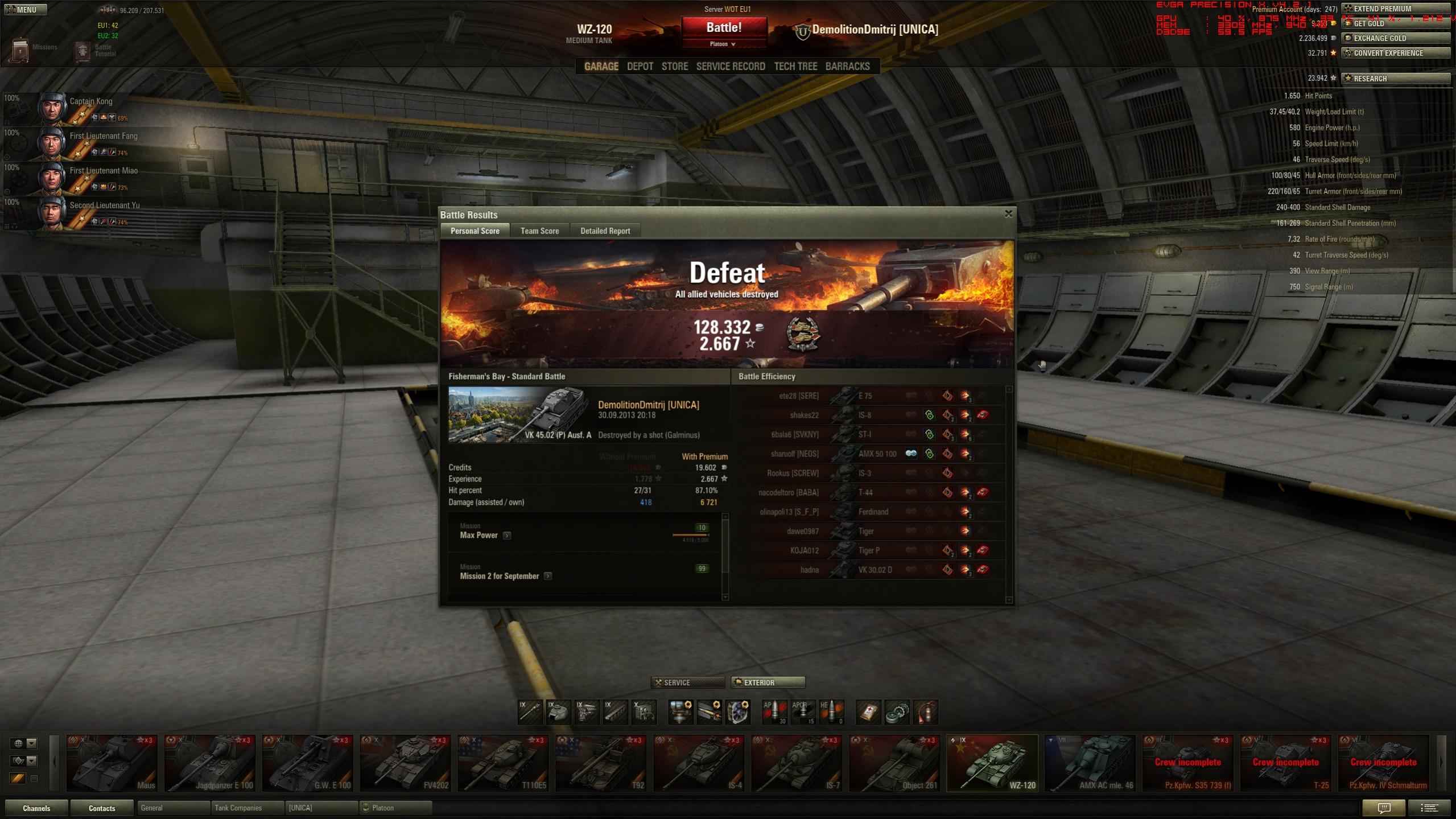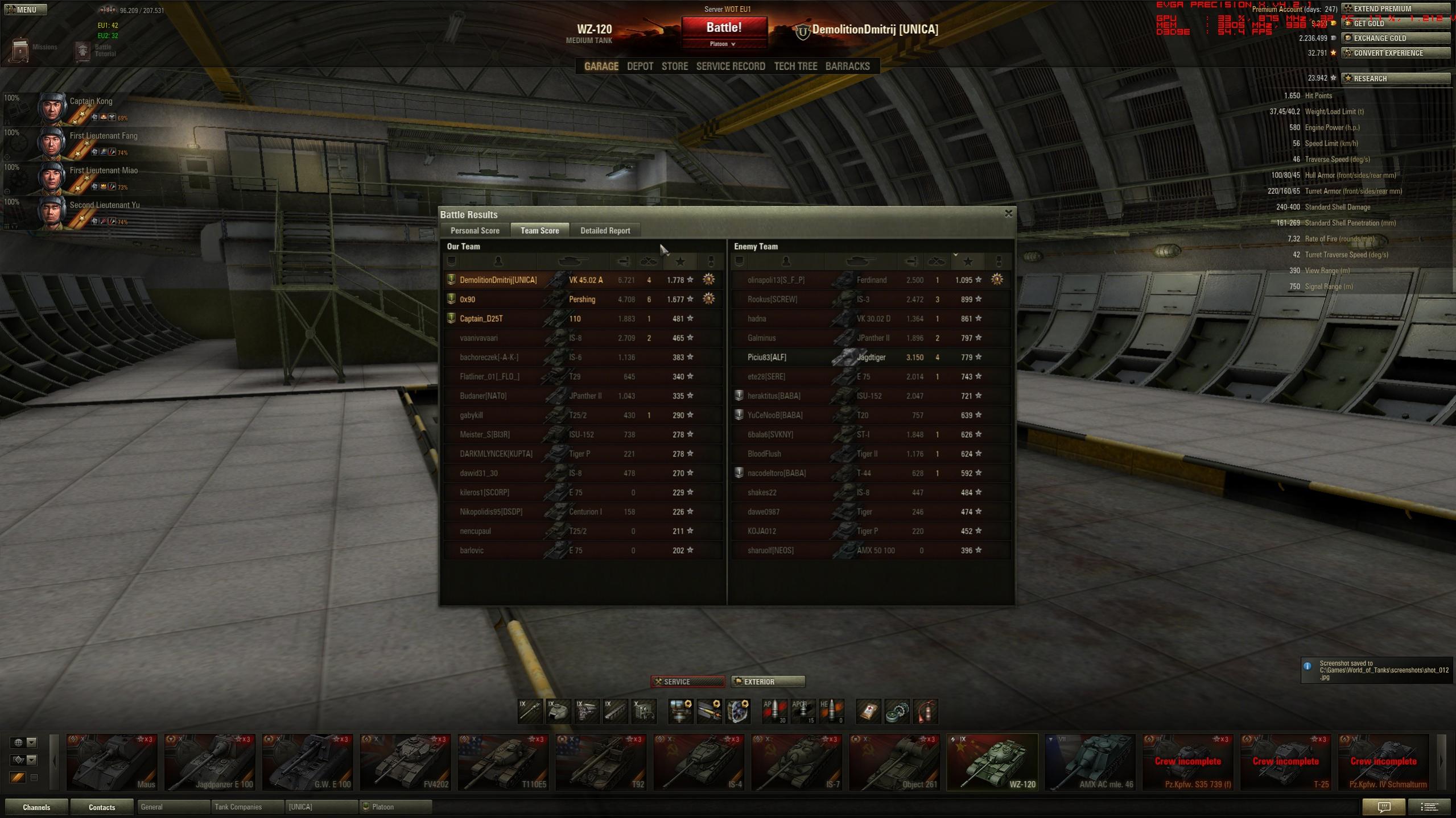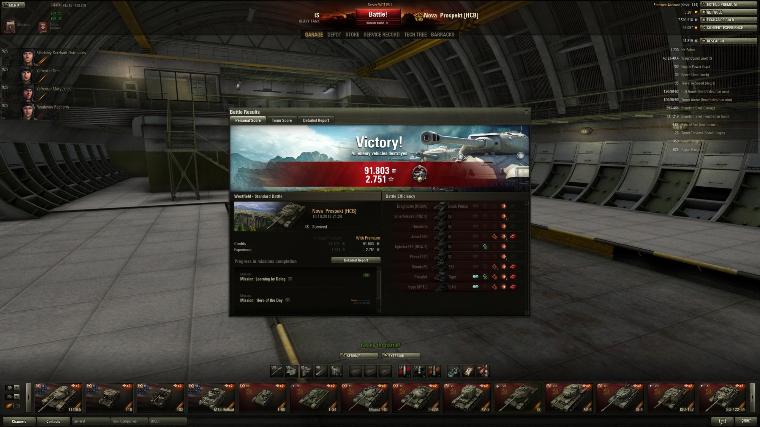 Gefecht auf Westfield. Zuerst im Norden gewesen, dann in die City und danach wieder in Norden und dann zum Feind in die Base. Zum Glück haben die anderen Spieler auf meine Anweisungen gehört und ein Tiger vom Gegner war AFK oder hatte nen Disconnect.