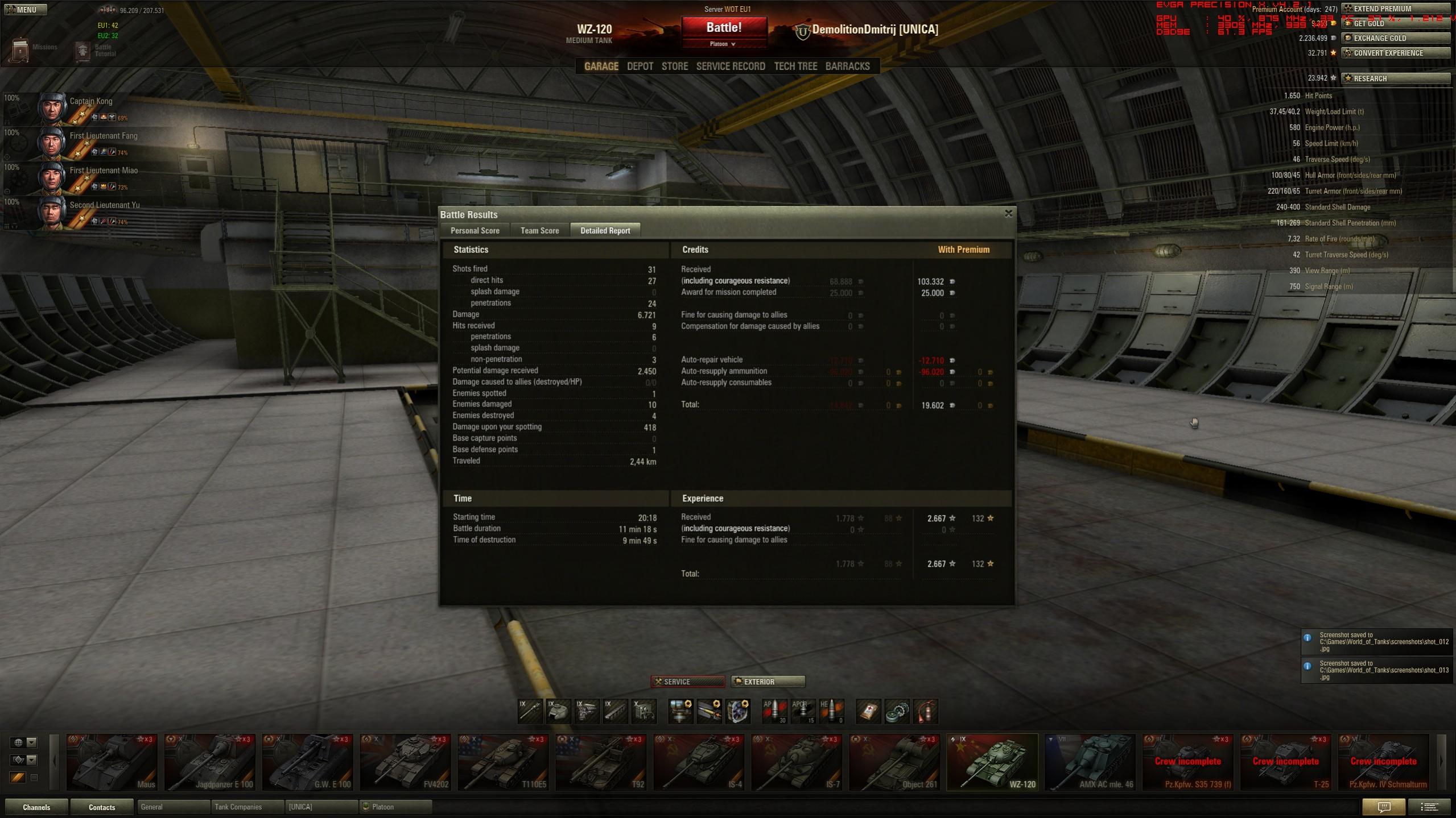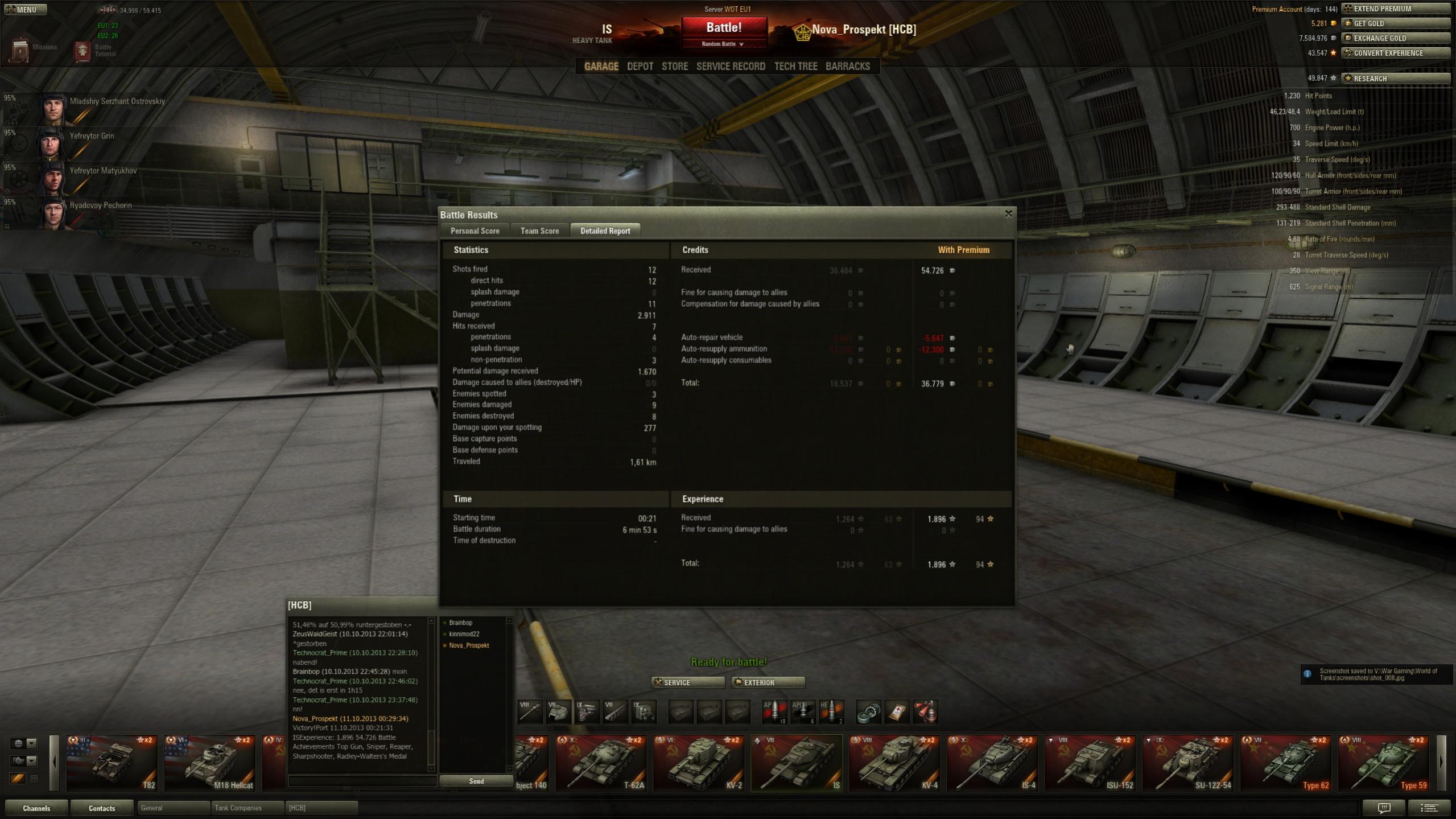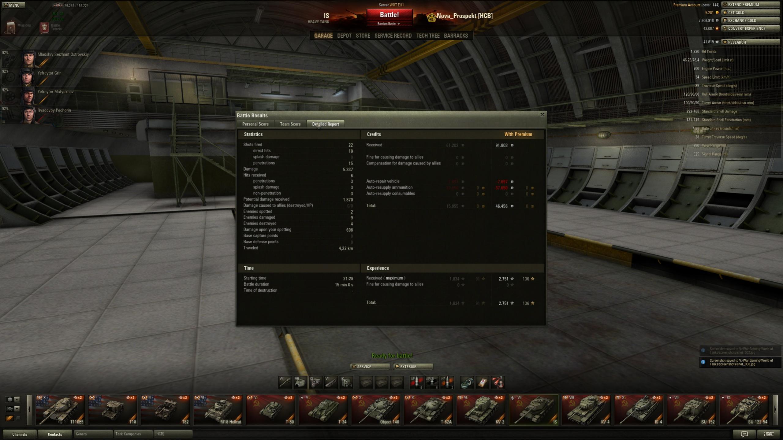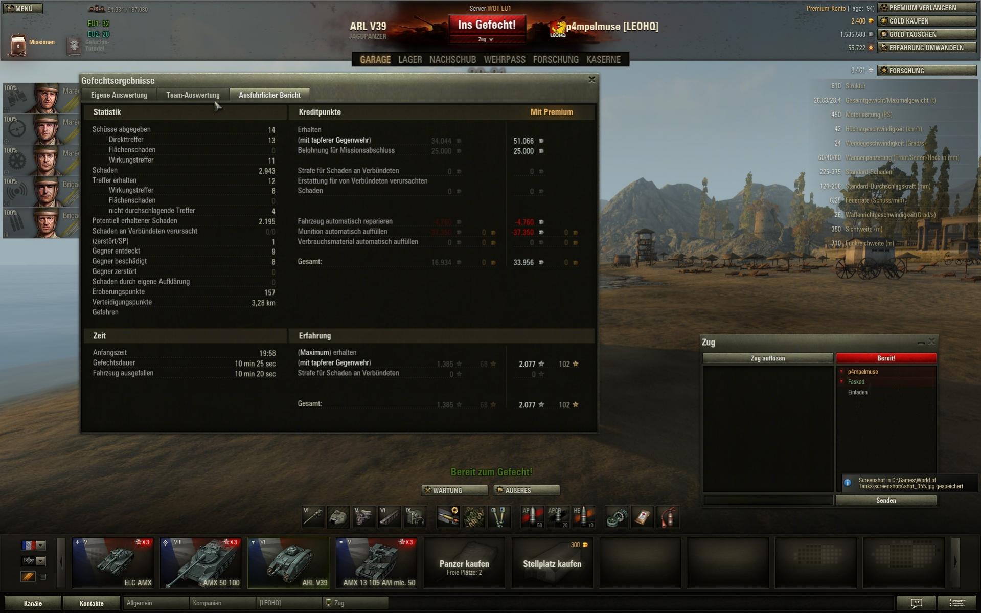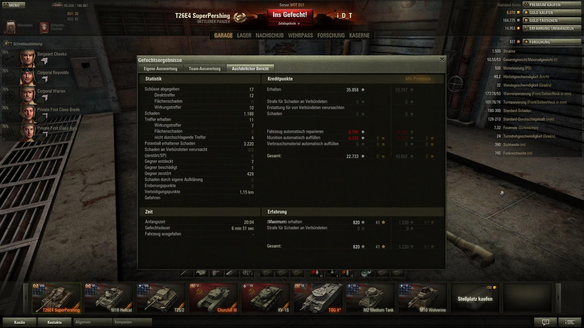 3022 xp sind es geworden für 6131 dmg inkl. 10 kills und pool's medal.