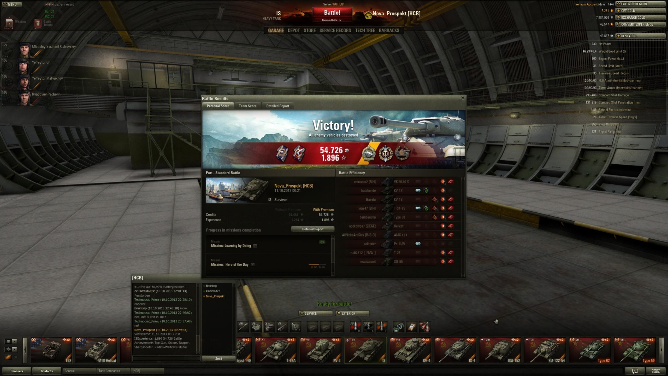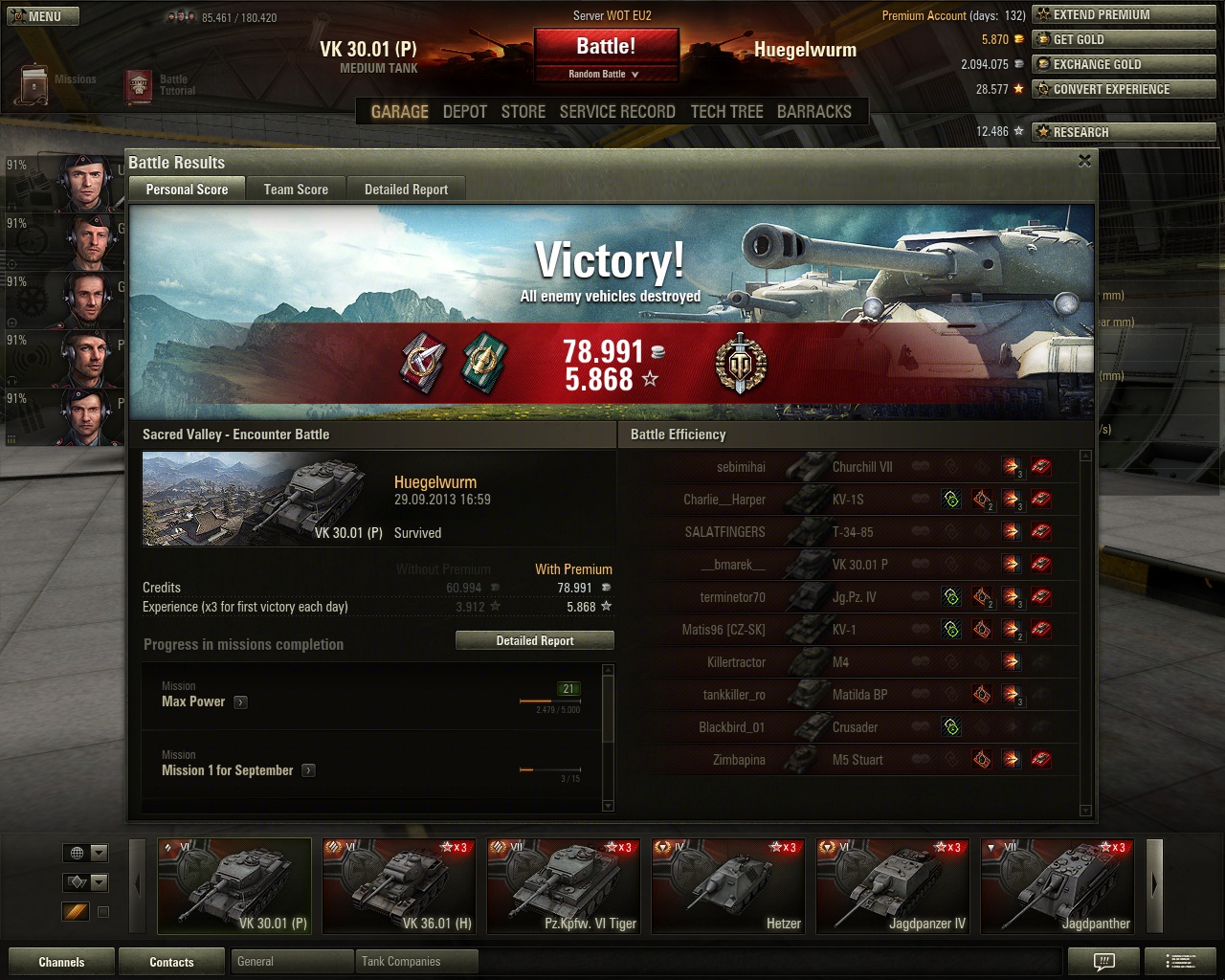 Experience received: 5.868 (x3 for the first victory each day)