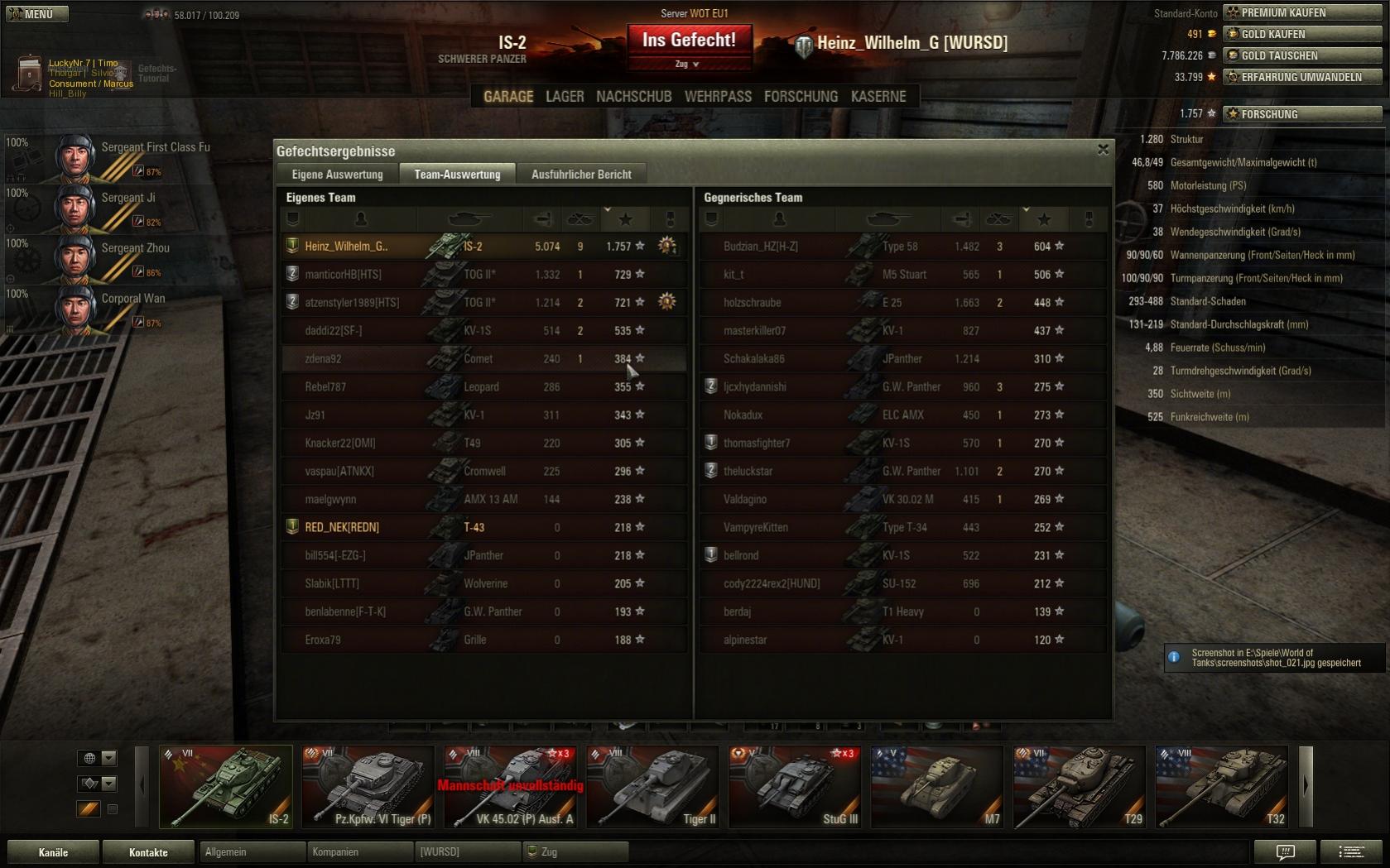 Und das 2.verlorene Gefecht gleich danach mit der SU 100M1,Standard Gefecht Westfield,hey muss ich als poppliger T7 TD mit einer pen von 175 in einem T7-9 Gefecht am Schluss zuoberst stehen,hmm..nein