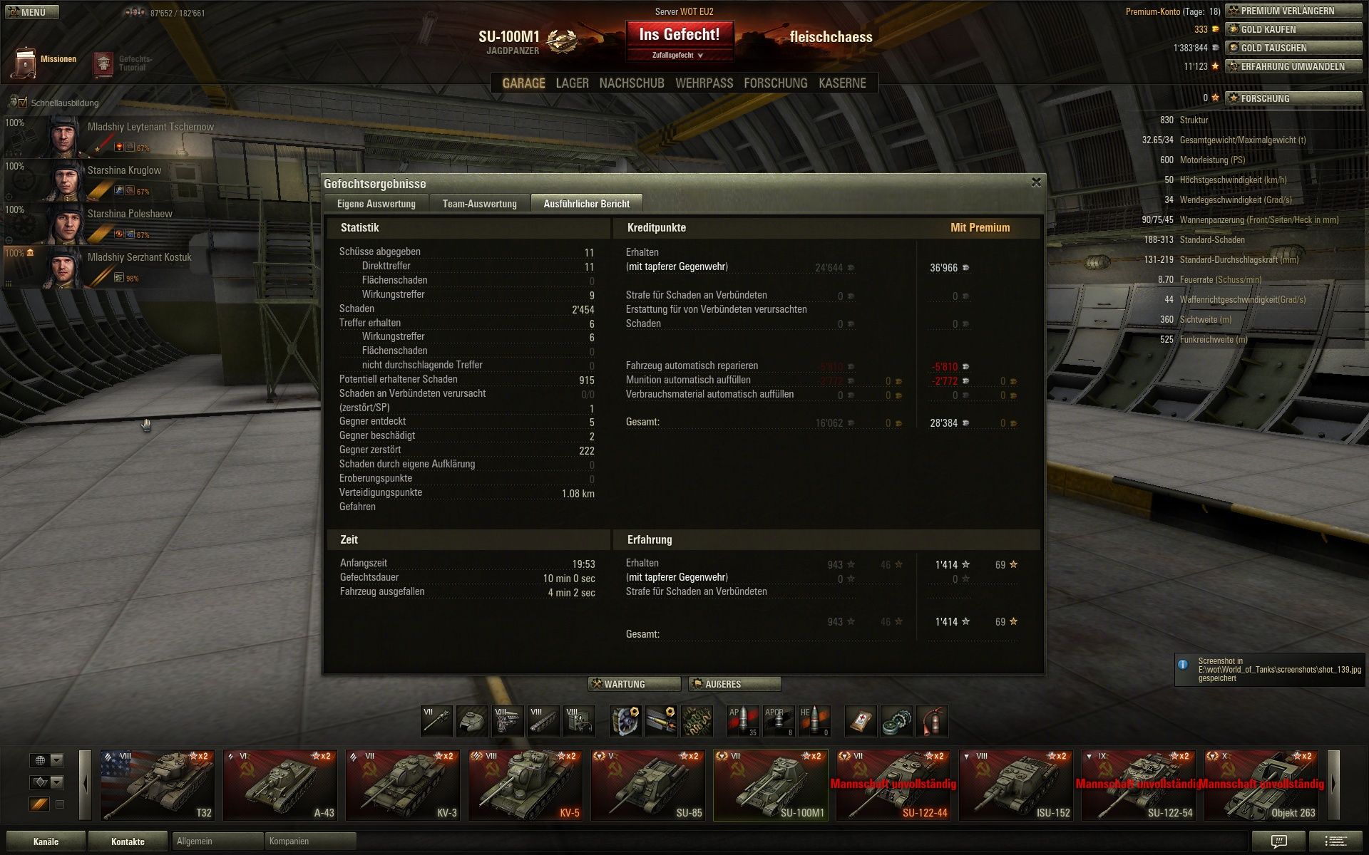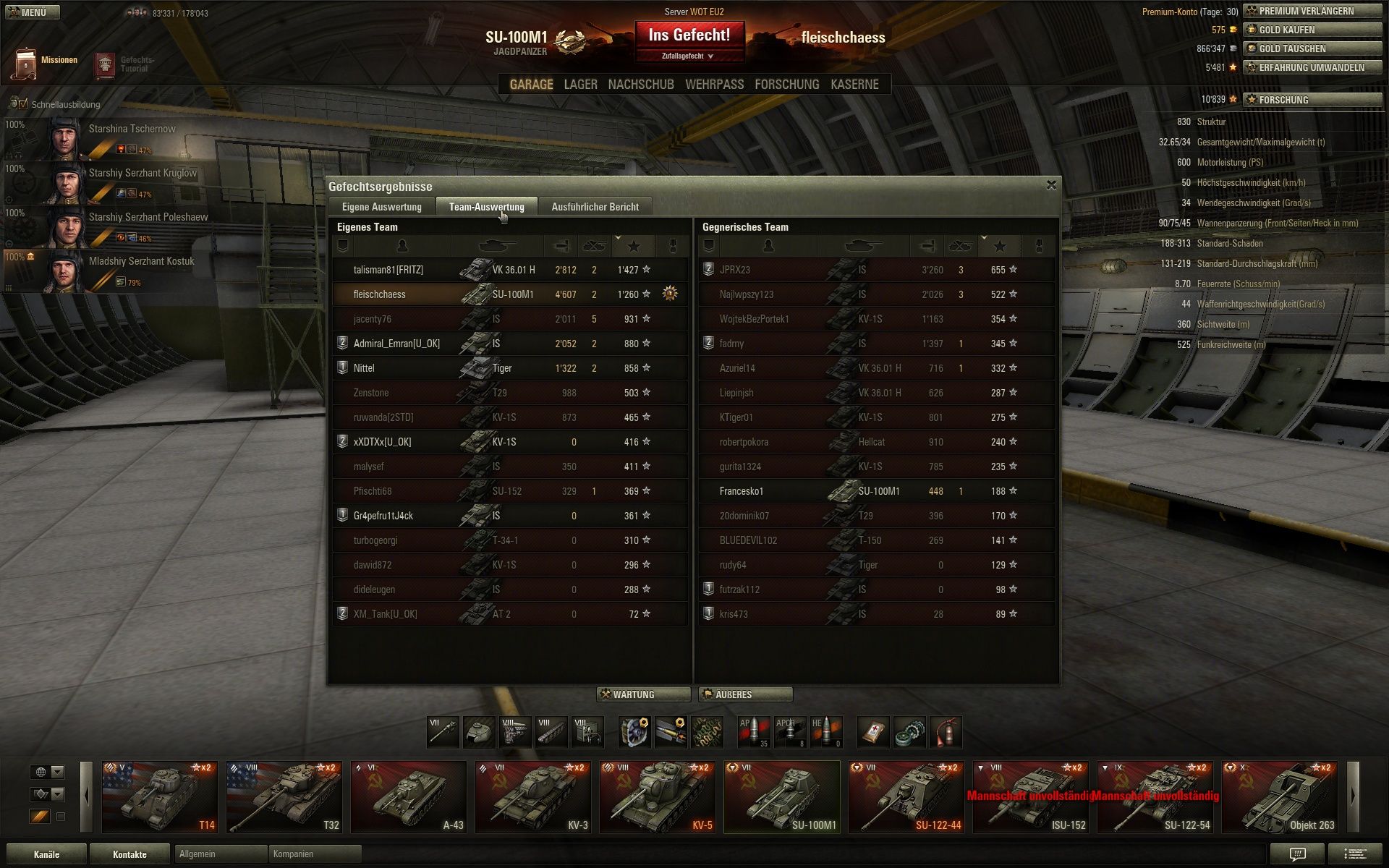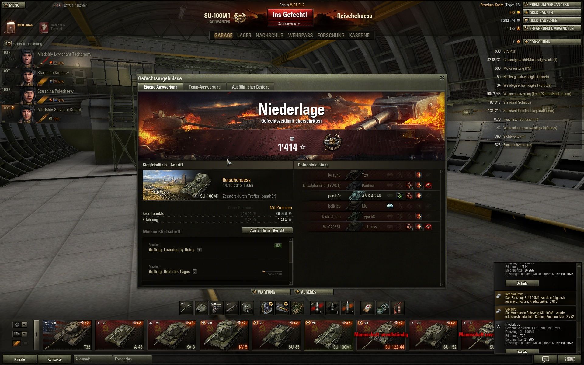 Heut 7 Gefechte gemacht,alle verloren..letzten 2 im SU 100M1...