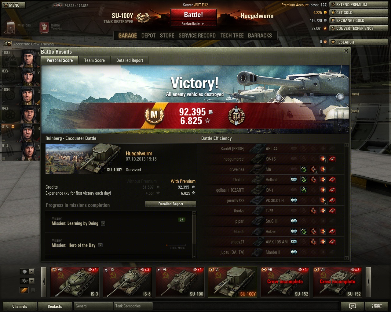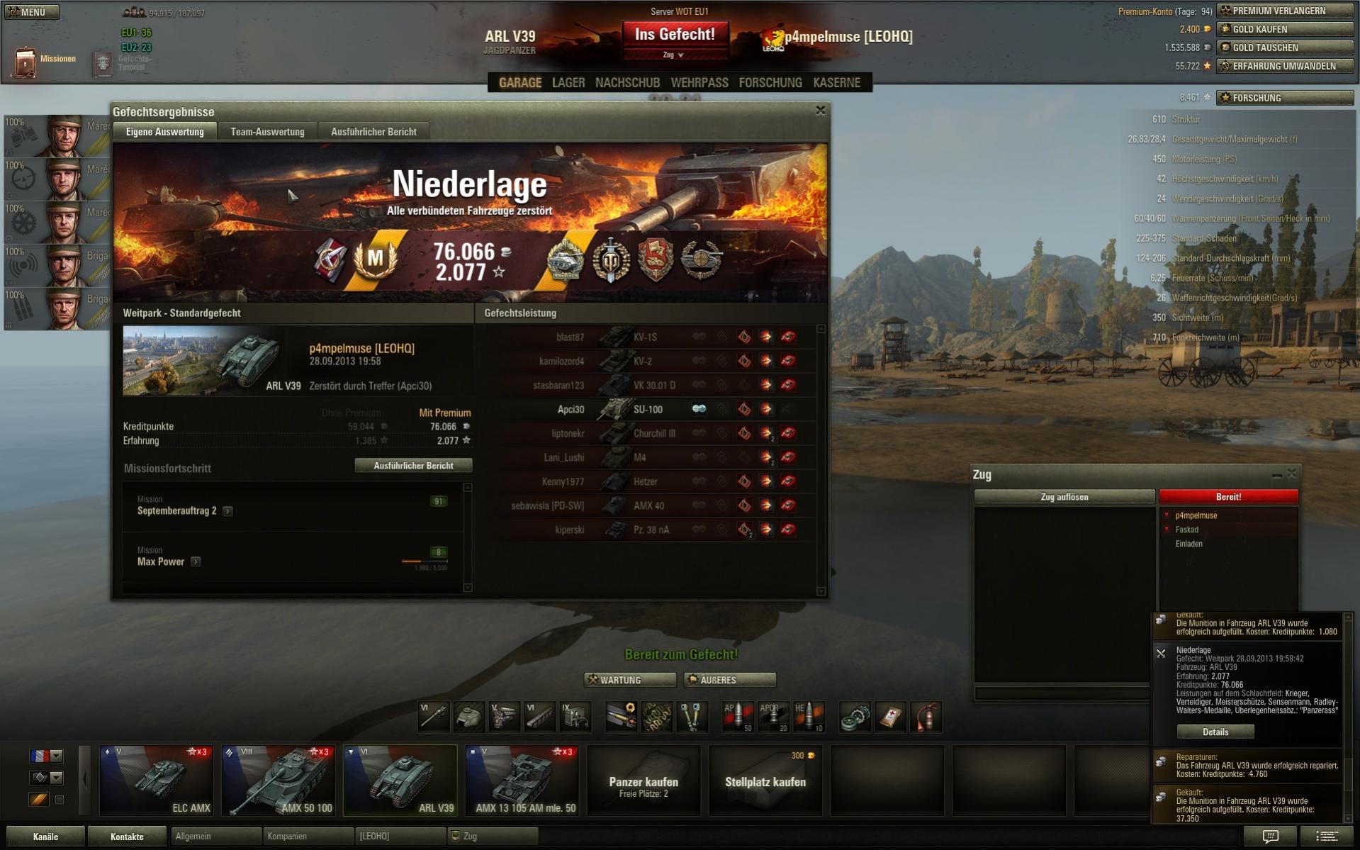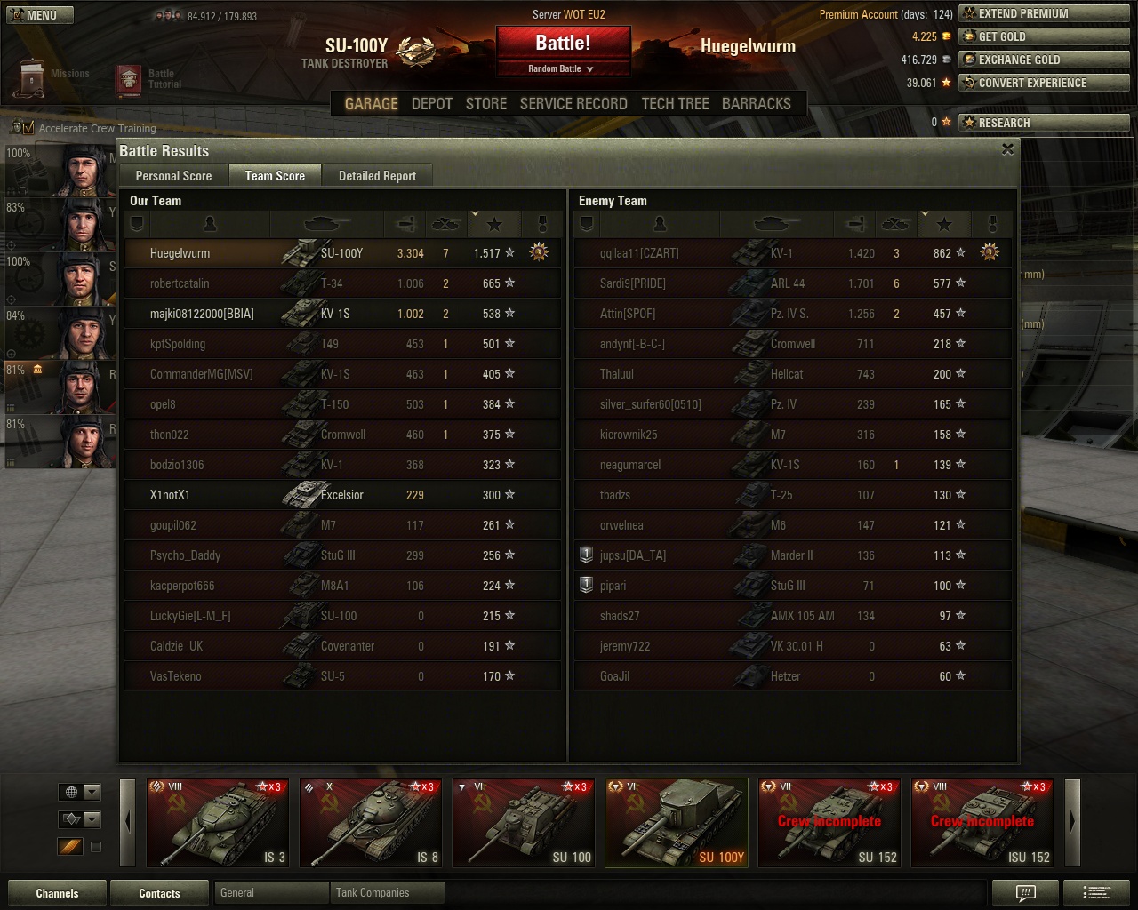 Heut 7 Gefechte gemacht,alle verloren..letzten 2 im SU 100M1...