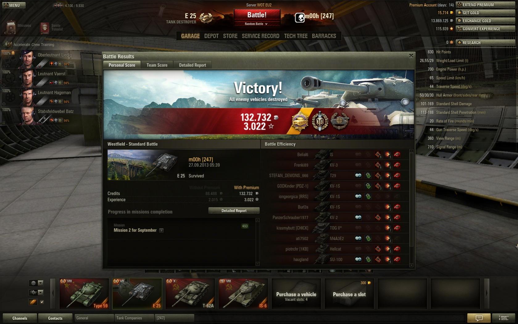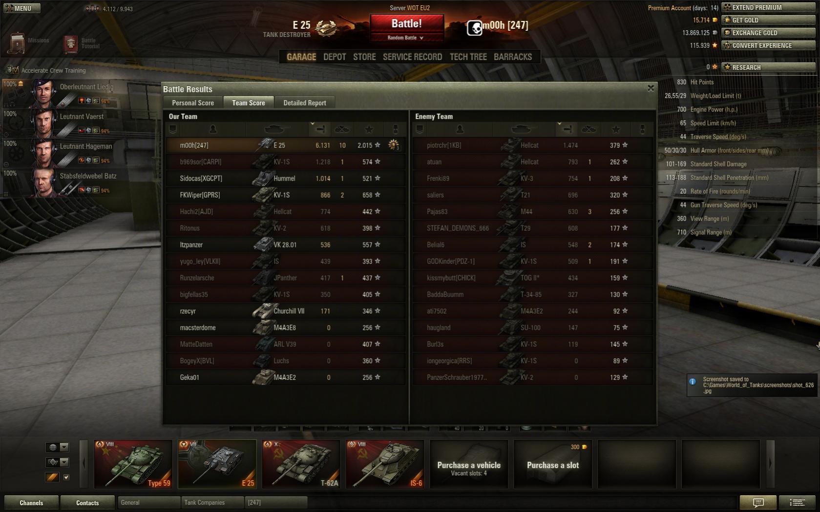 Hab am Freitag auch endlich mal die 3k xp Marke mit dem E 25 geknackt.